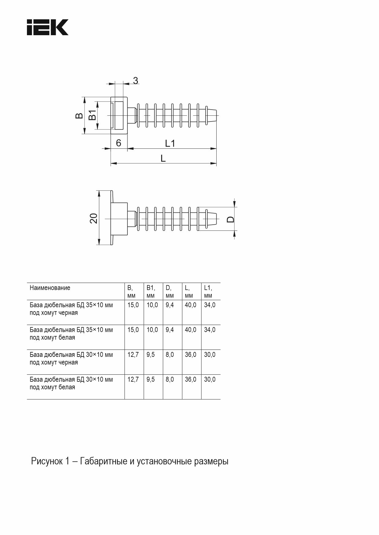 База дюбельная БД 30х10мм под хомут черная(100шт) IEK