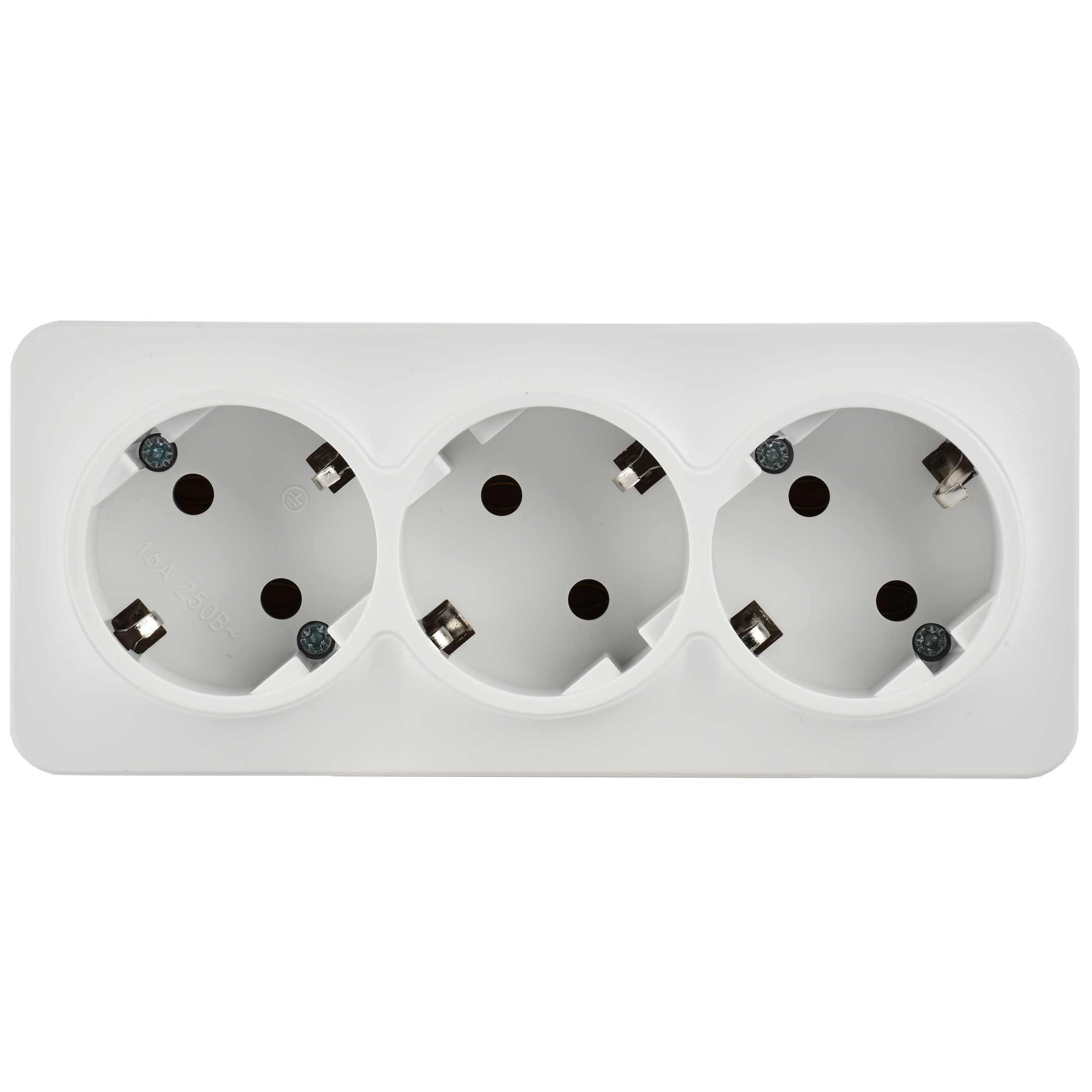 GLORY Розетка 3-местная для открытой установки с заземлением без защитных шторок 16А РС23-3-ХБм белый матовый IEK
