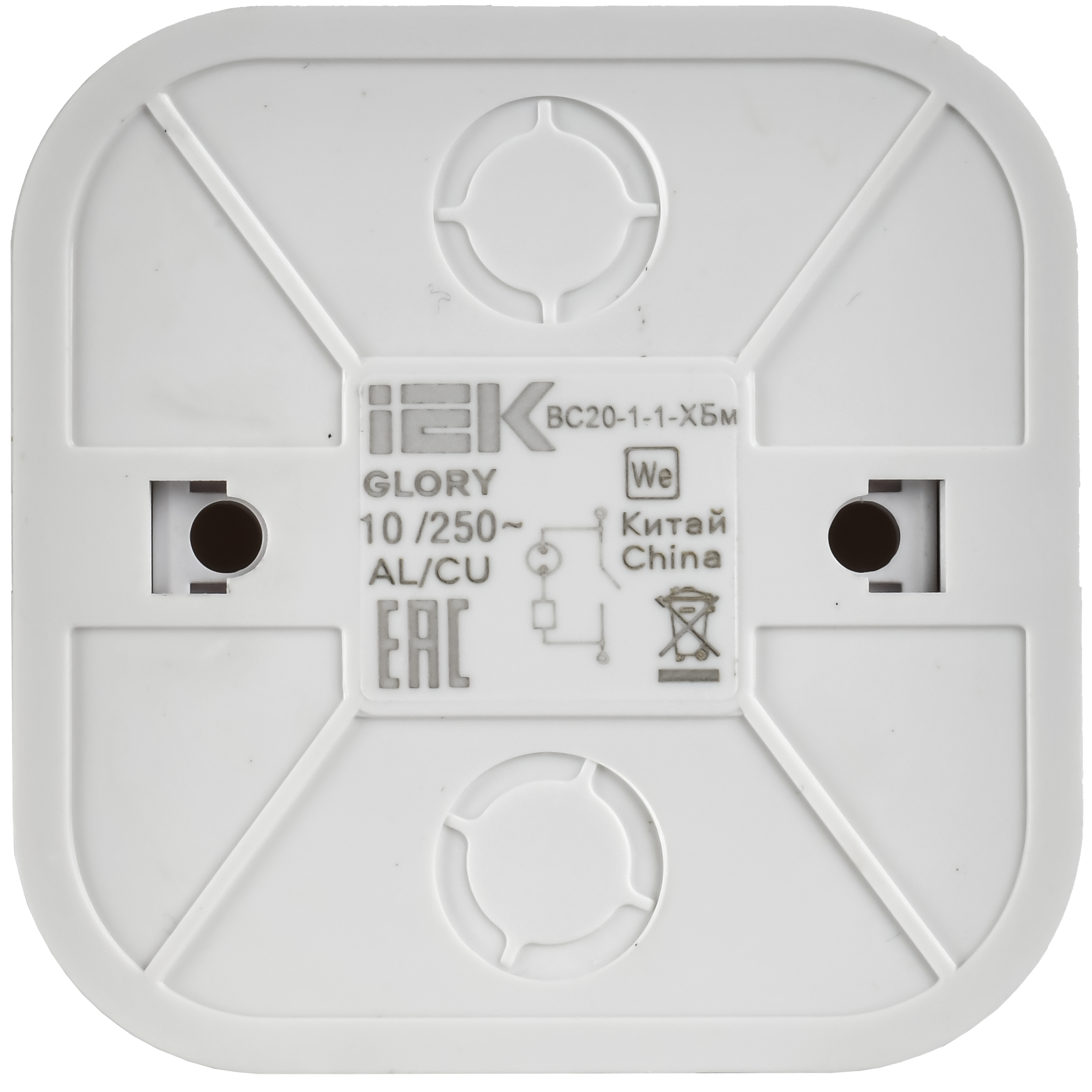 GLORY Выключатель 1-клавишный для открытой установки с индикацией 10А ВС20-1-1-ХБм белый матовый IEK