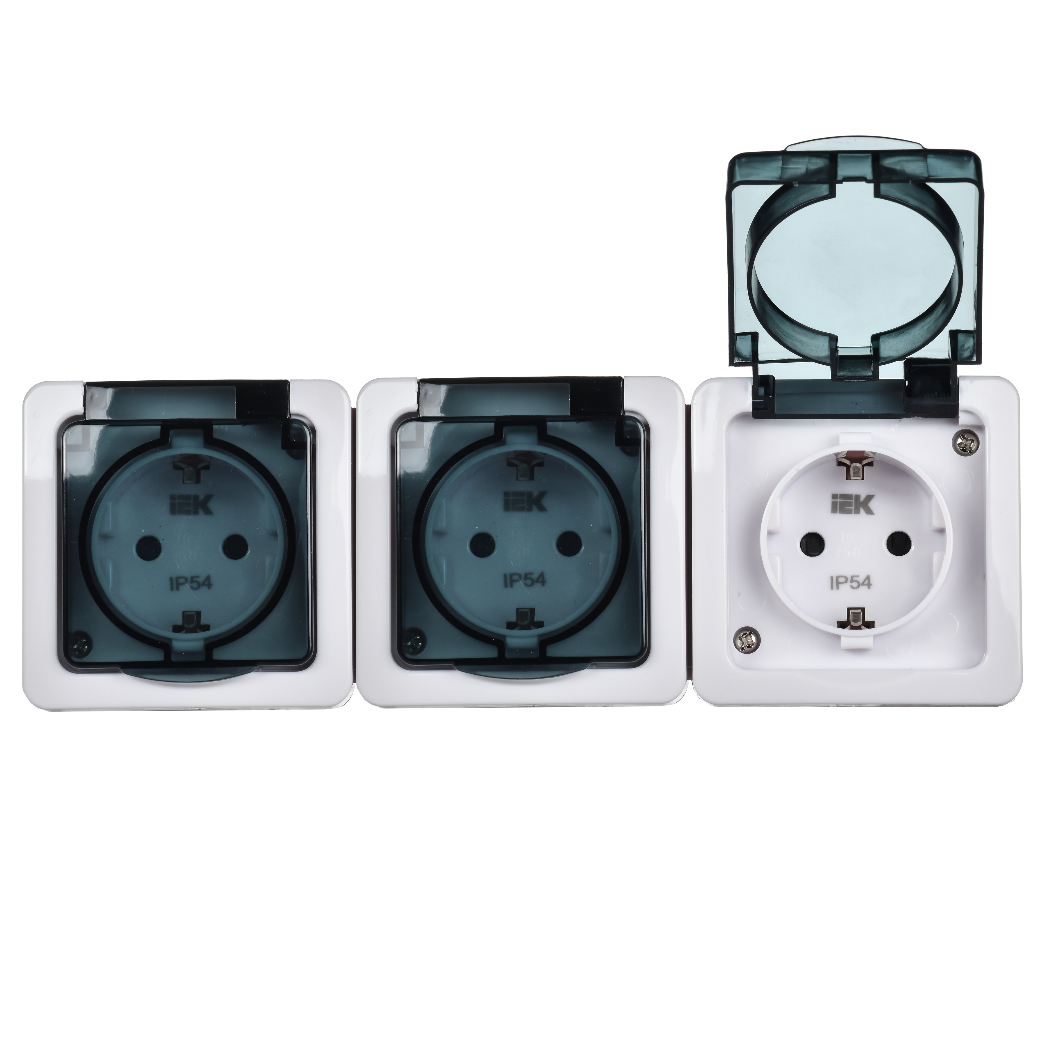 Розетка 3-местная для открытой установки РСб23-3-ГПБд с заземляющим контактом IP54 ГЕРМЕС PLUS (цвет крышки: дымчатый) IEK