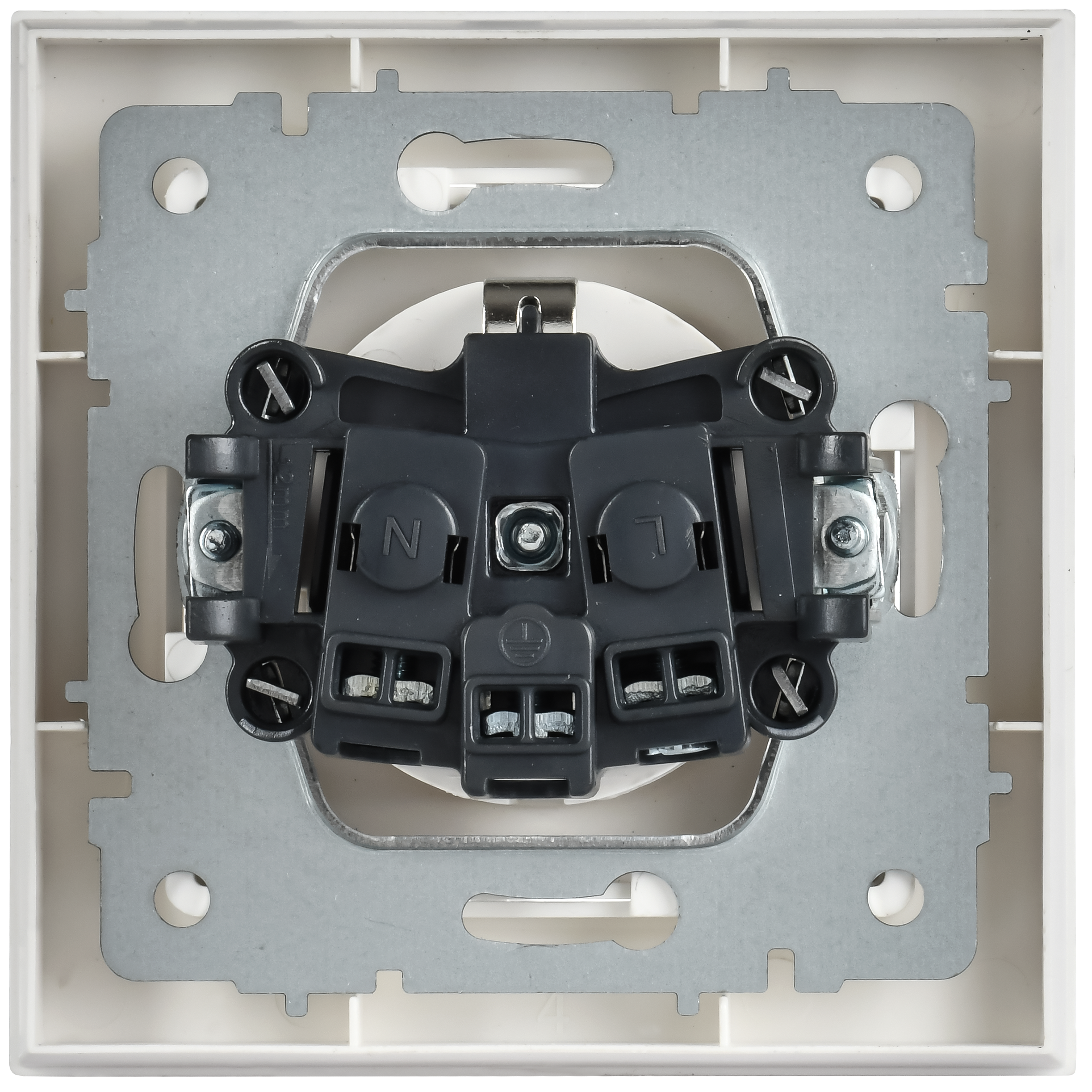 BRITE Розетка 1-местная с заземлением с защитными шторками 16А в сборе РСР14-1-0-БрАБ арктический белый IEK