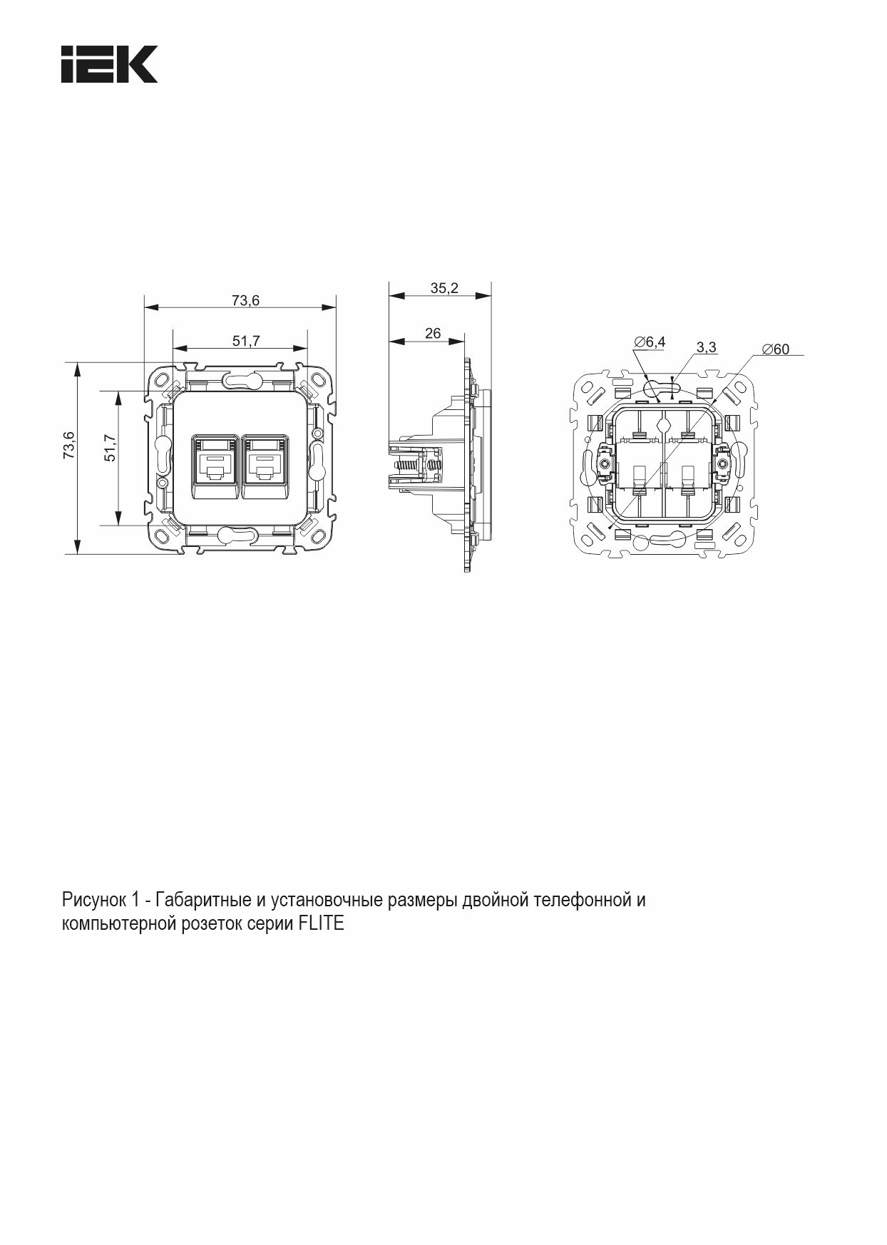 FLITE Розетка 2-местная компьютерная RJ45 категория 6 UTP РК6-2-0-ФлШ шампань IEK