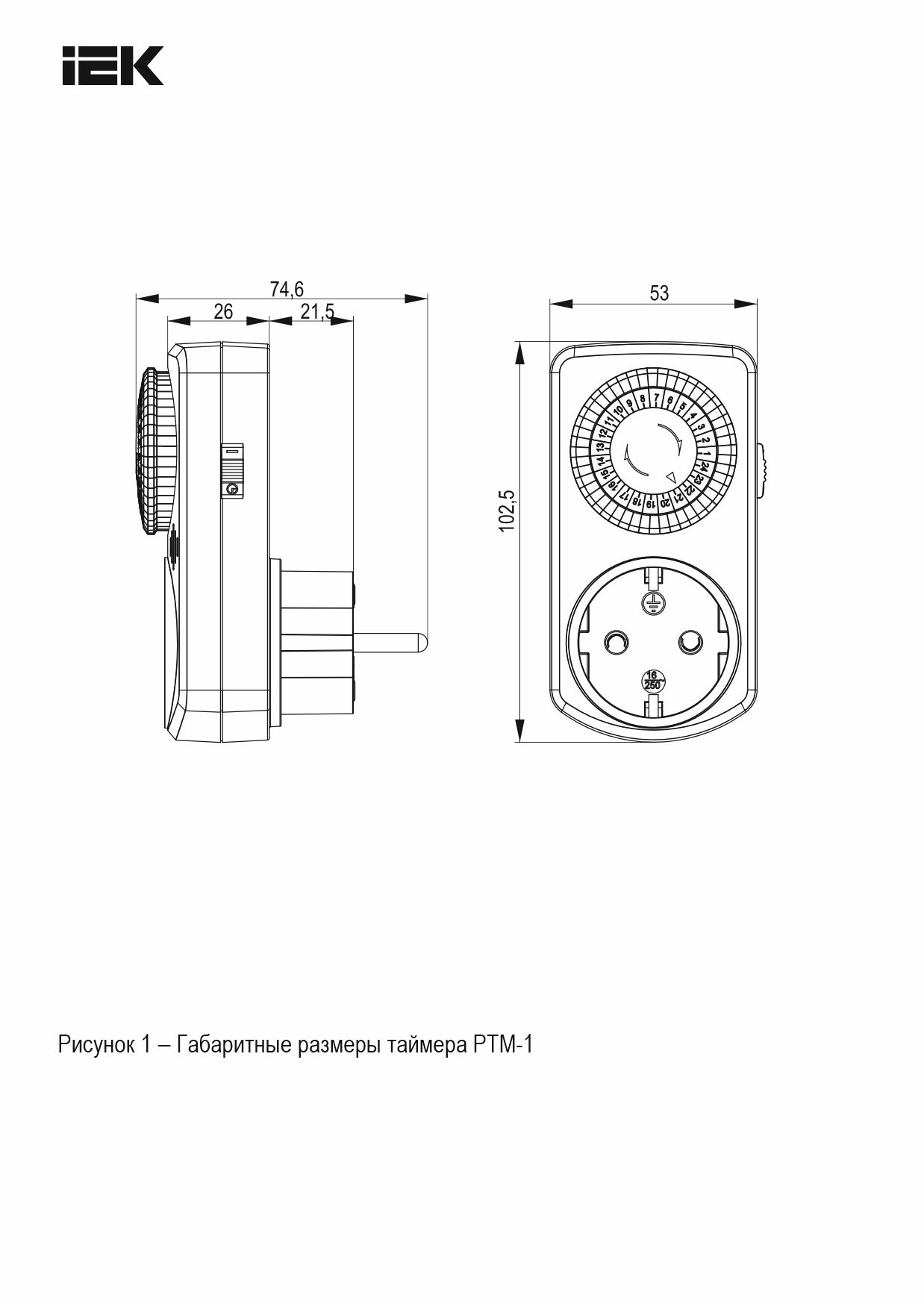 Розетка-таймер механический РТМ-1 30мин 24ч 48on/off 16А IP20 IEK