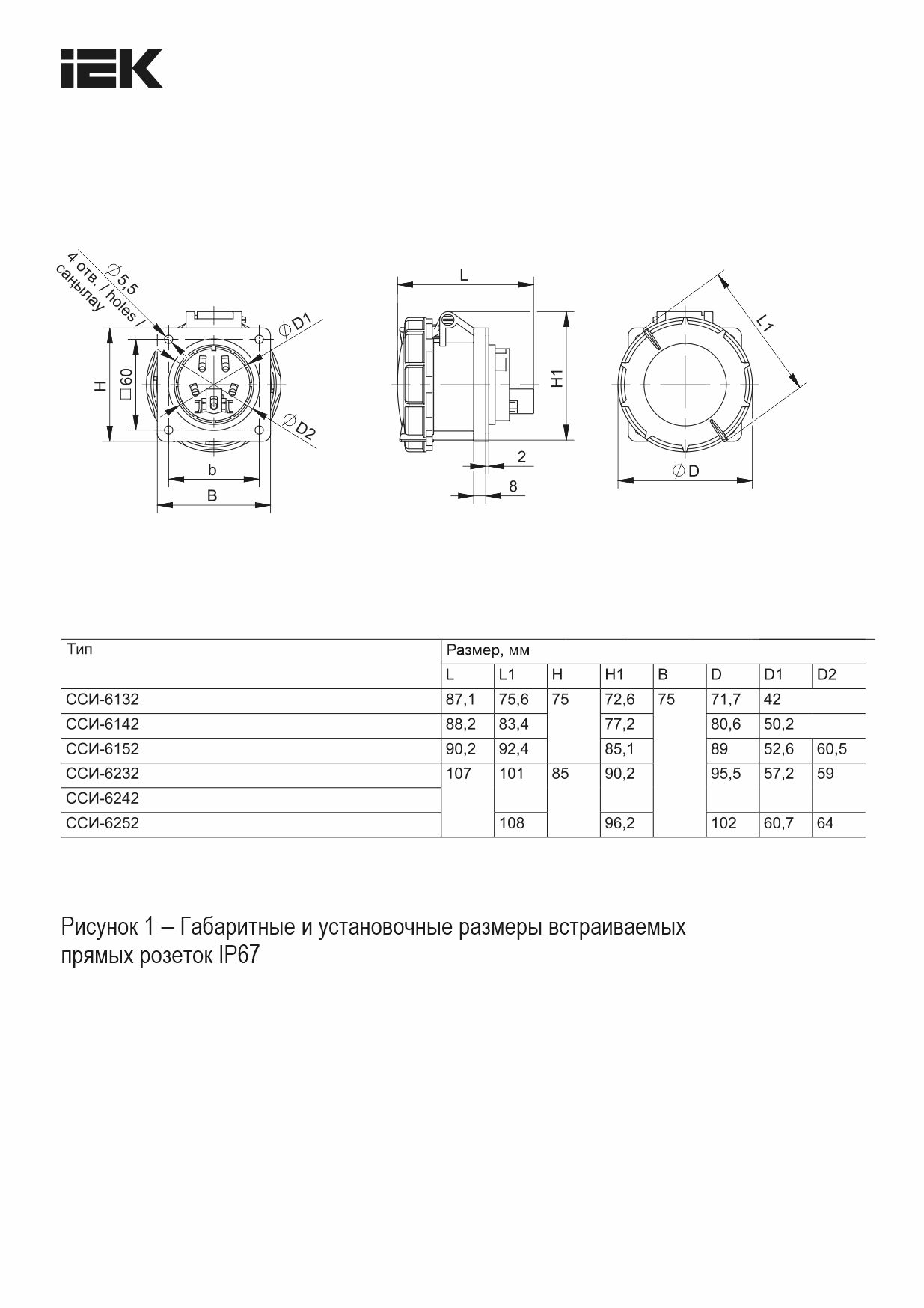 | Расстояние до отверстия по горизонтали, мм | 60 |