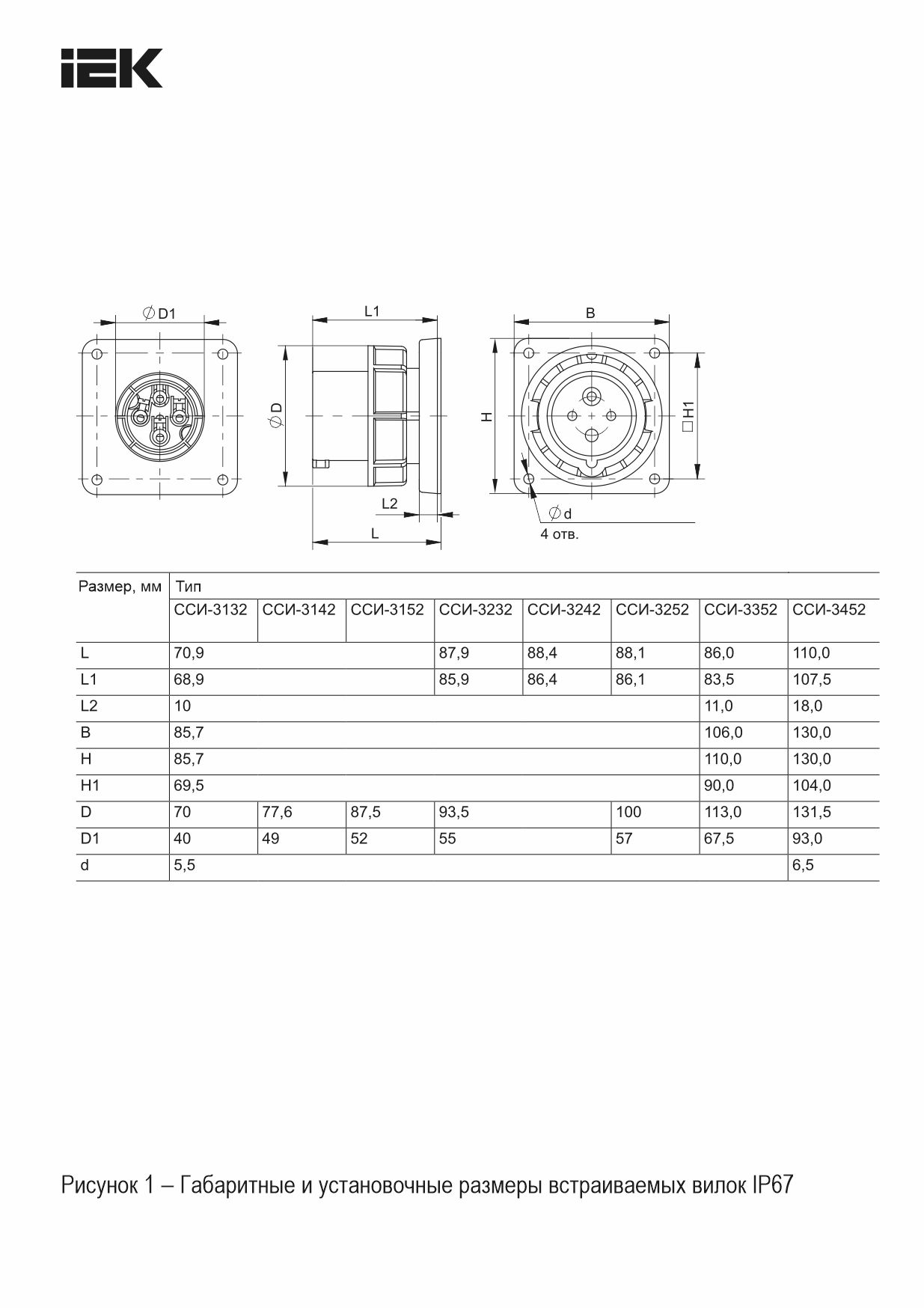 Вилка встраиваемая ССИ-3252 32А-6ч 380В 3P+PE+N IP67 IEK