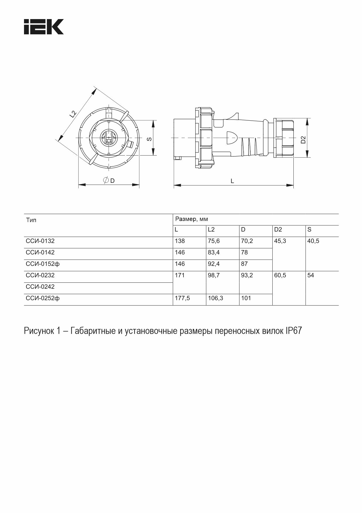 Вилка переносная с ф/и ССИ-0252ф 32А-6ч 380В 3P+PE+N IP67 IEK