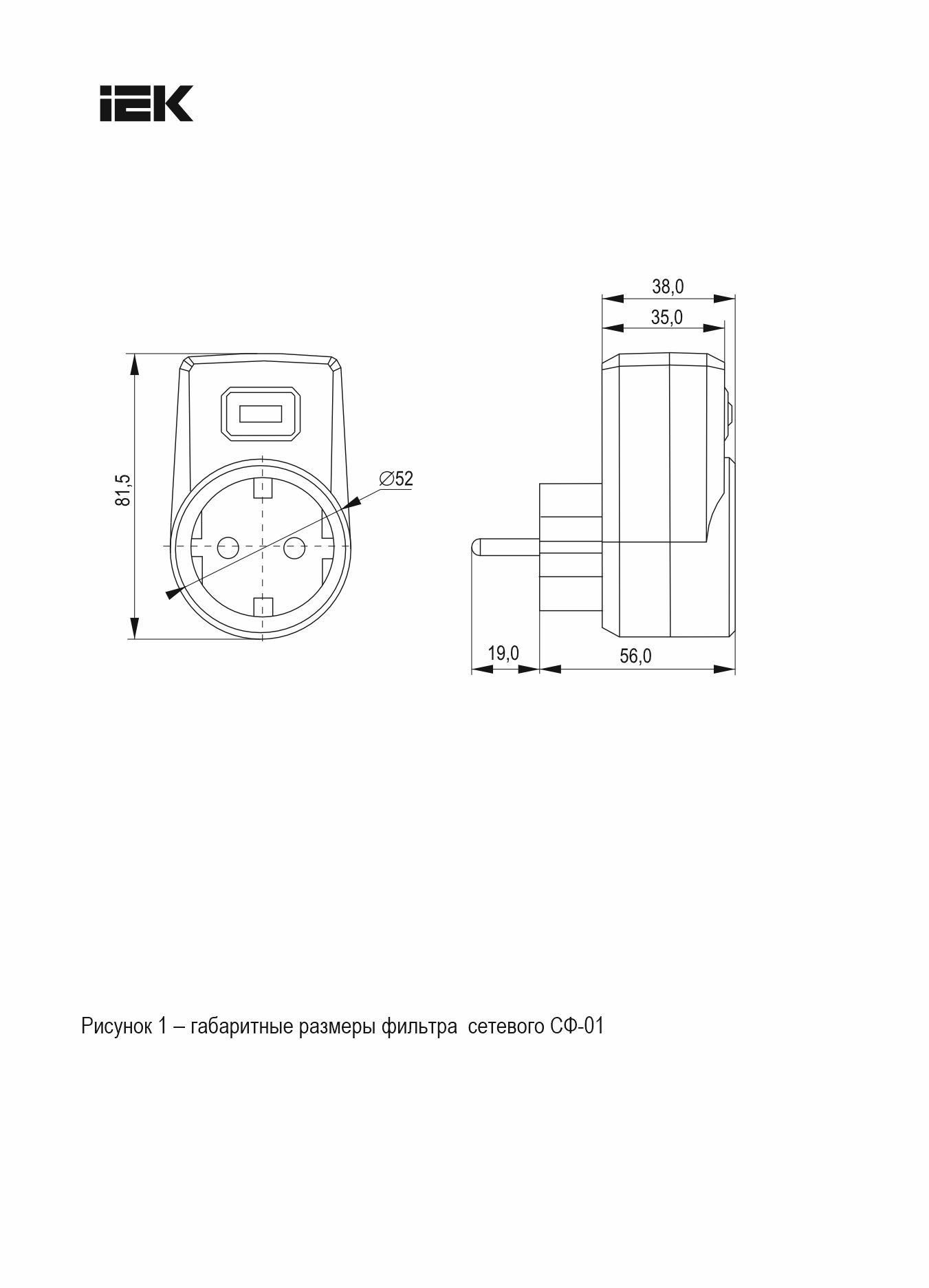 Сетевой фильтр СФ-01 1 место с заземлением 16А/250В белый IEK