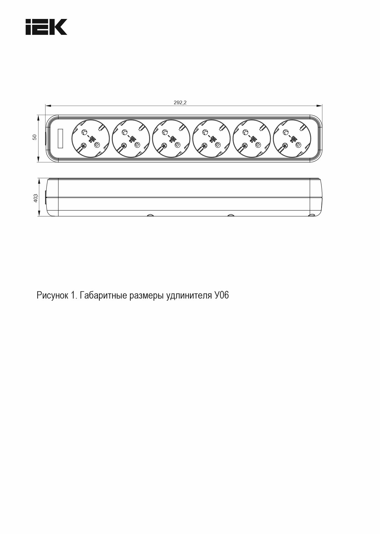 UMA Удлинитель У06 6 мест 2P+PE 5м 3х1мм2 10А белый IEK