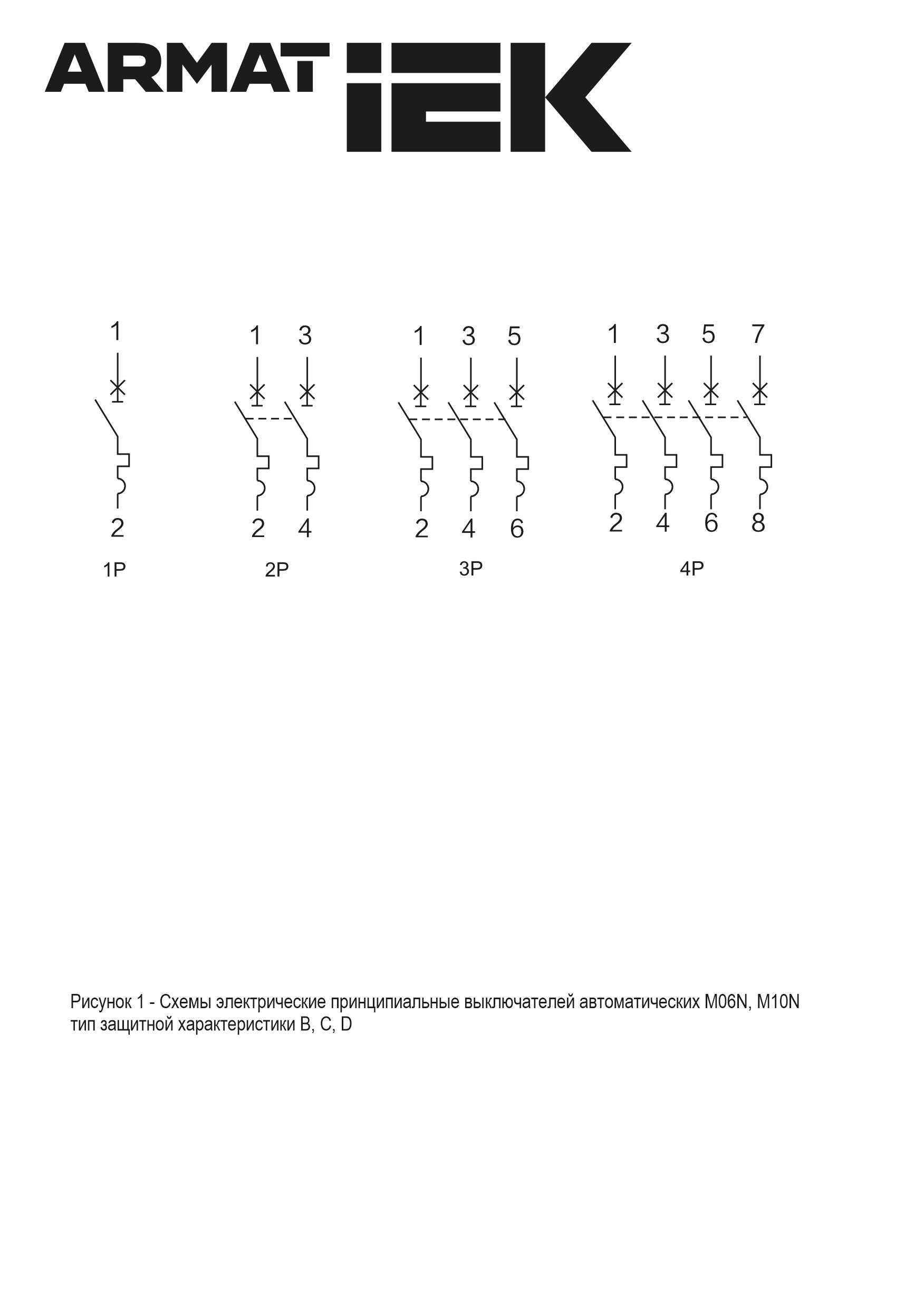 Автоматические выключатели ARMAT серии M06N предназначены для защиты цепей от перегрузки и короткого замыкания. Модельный ряд включает в себя устройства с характеристиками срабатывания B, C, D и номинальными токами от 0,5 до 63 А. Номинальная отключающая способность автоматических выключателей ARMAT серии M06N составляет 6 кА. Предельная отключающая способность варьируется в зависимости от номинала от 10 до 50 кА.