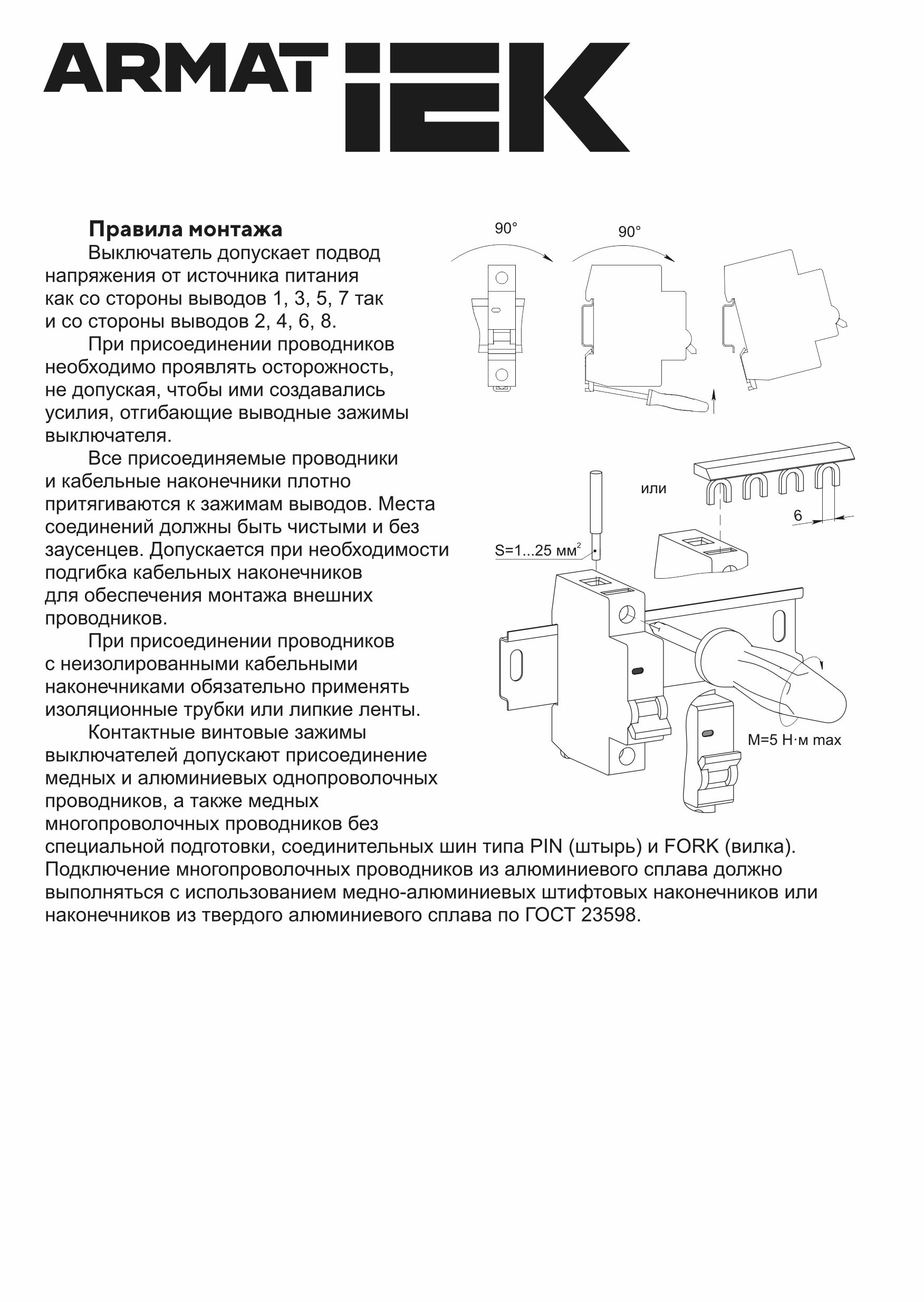 - Возможность подключения шин типа FORK с любой стороны автоматического выключателя.