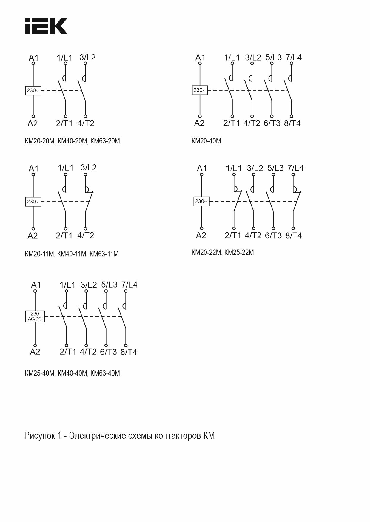 - Универсальное питание катушки управления – переменный или постоянный ток (КМ25-40М, КМ40-40М, КМ63-40М).