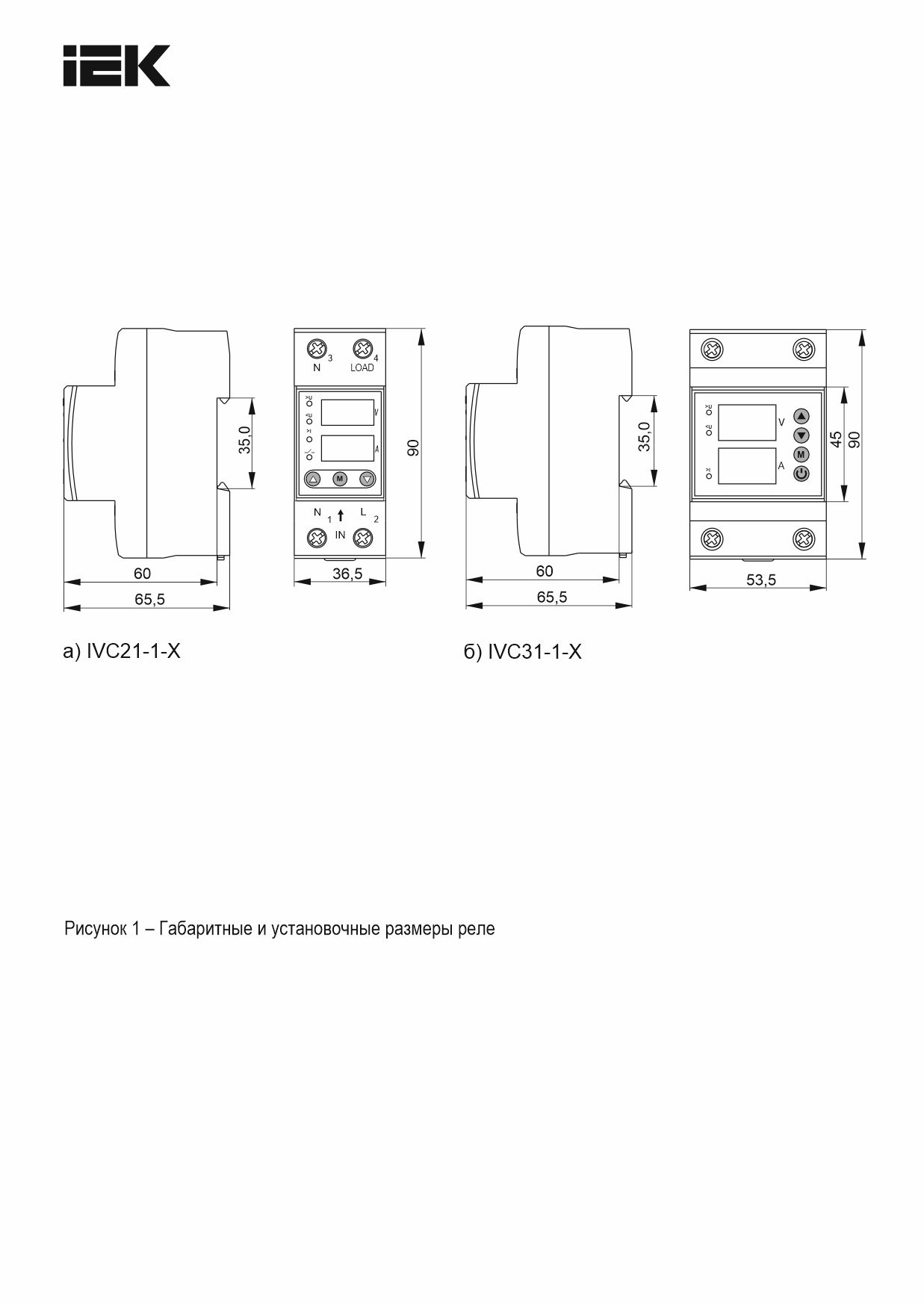 Реле напряжения и тока РНТ-д однофазное 36мм 25А IEK