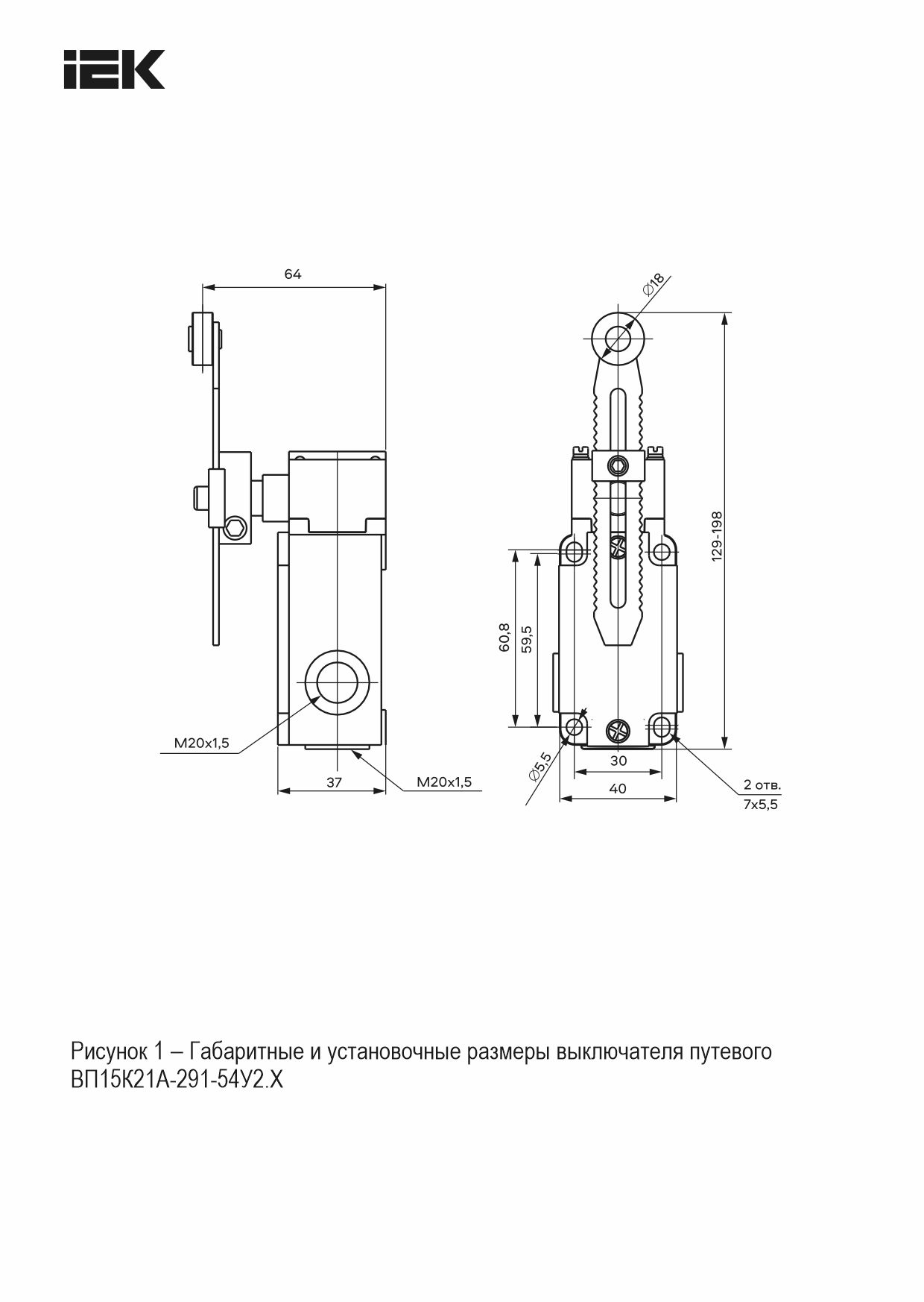 Выключатель путевой ВП 15К-21А-291-54 У2.8 рычаг с роликом регулируемый по длине прямого действия IEK