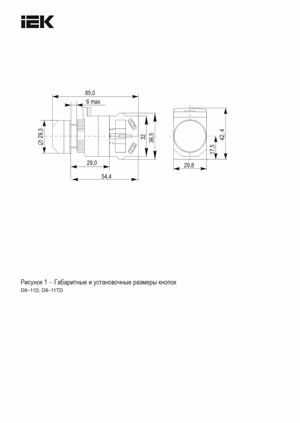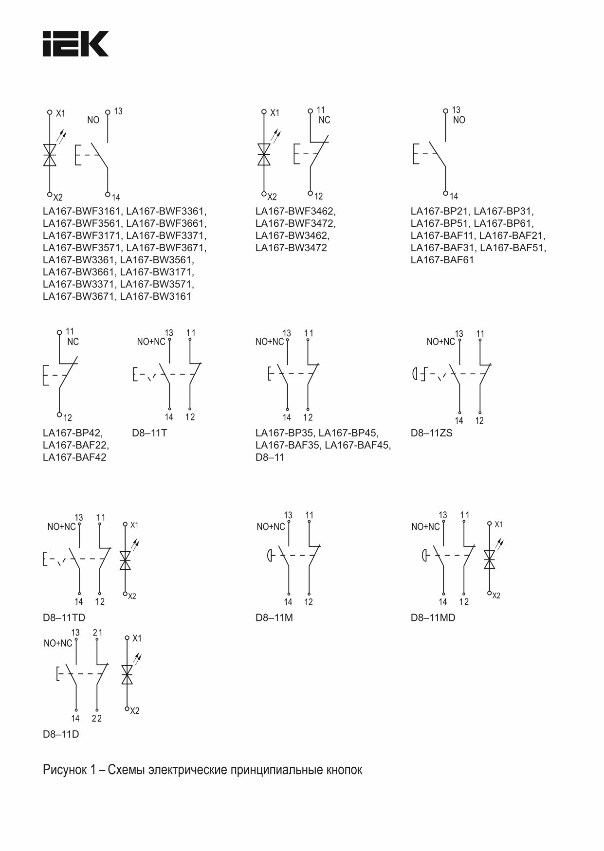 Кнопка управления D8-11D d=22мм 1NO+1NC с подсветкой белая IEK
