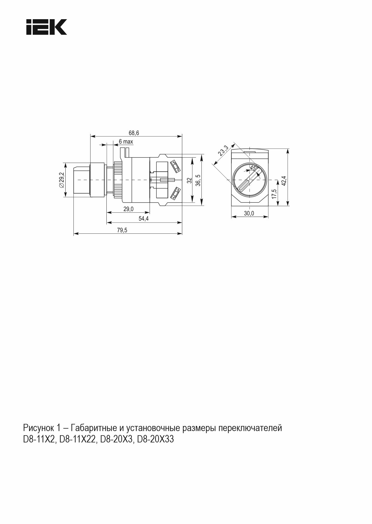 Переключатель D8-20X3 на 3 положения 2NO черный IEK