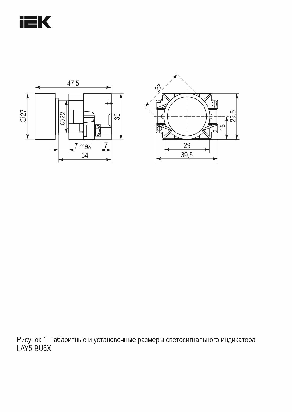 Индикатор LAY5-BU65 d=22мм желтый IEK