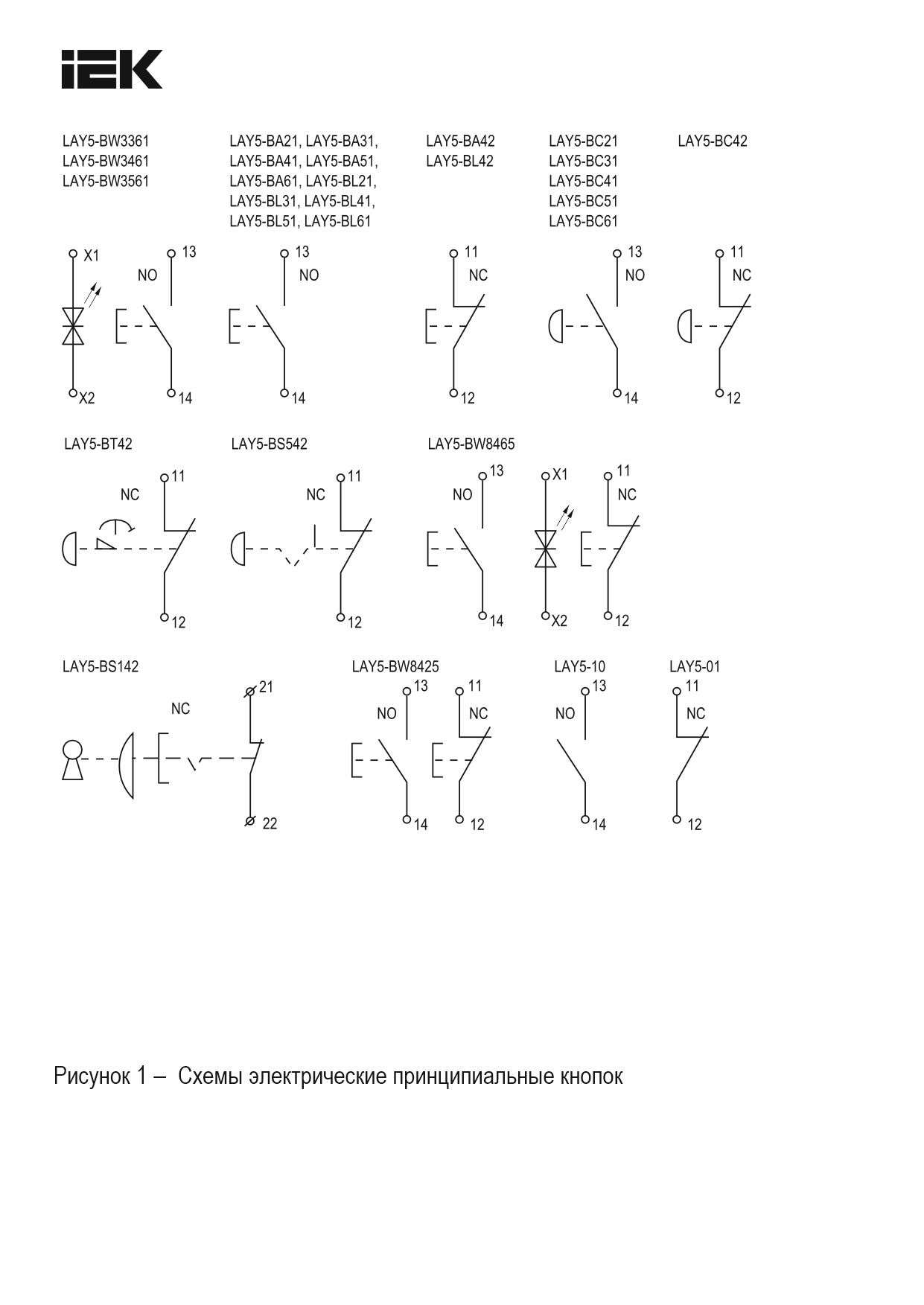Кнопка управления LAY5-BA42 без подсветки красная 1NC IEK