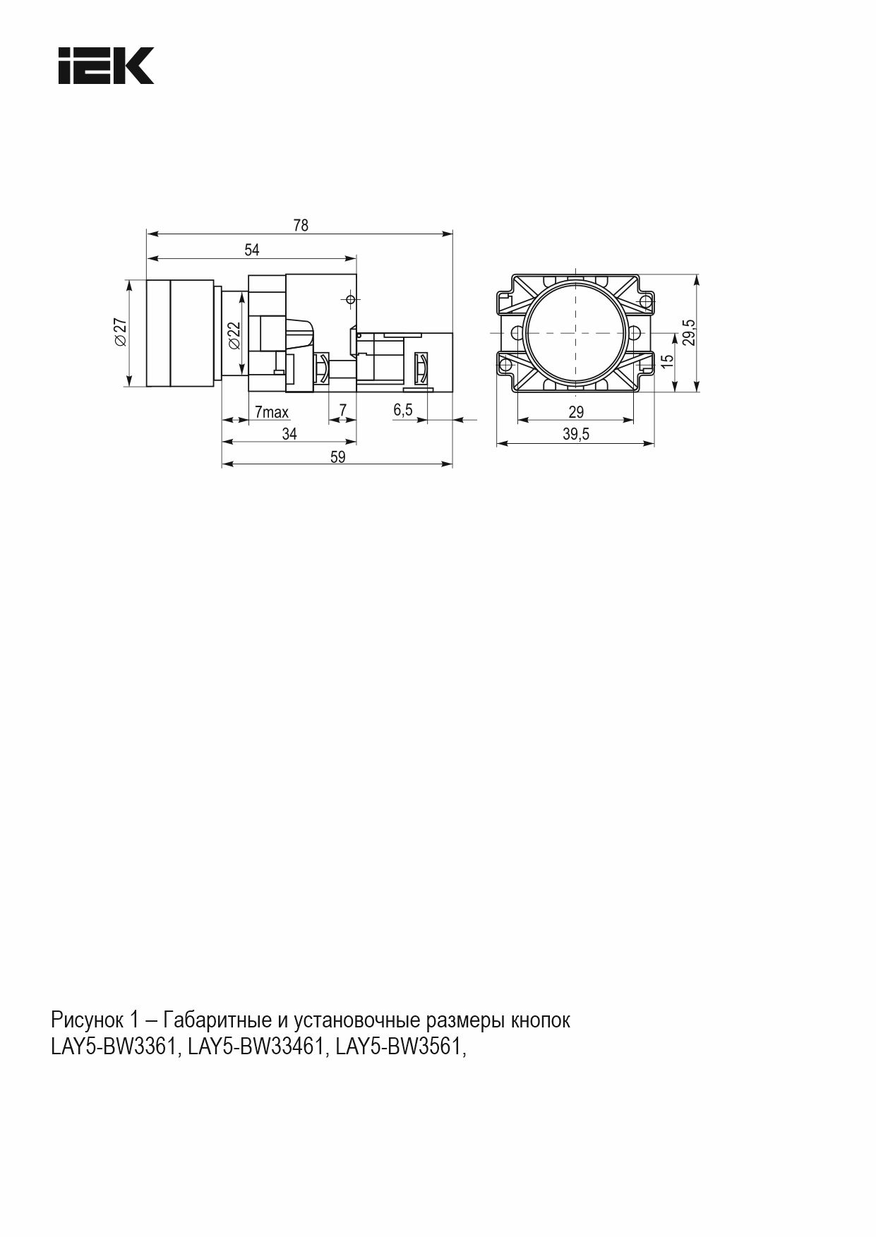 Кнопка управления LAY5-BW3361 с подсветкой зеленый 1NO IEK