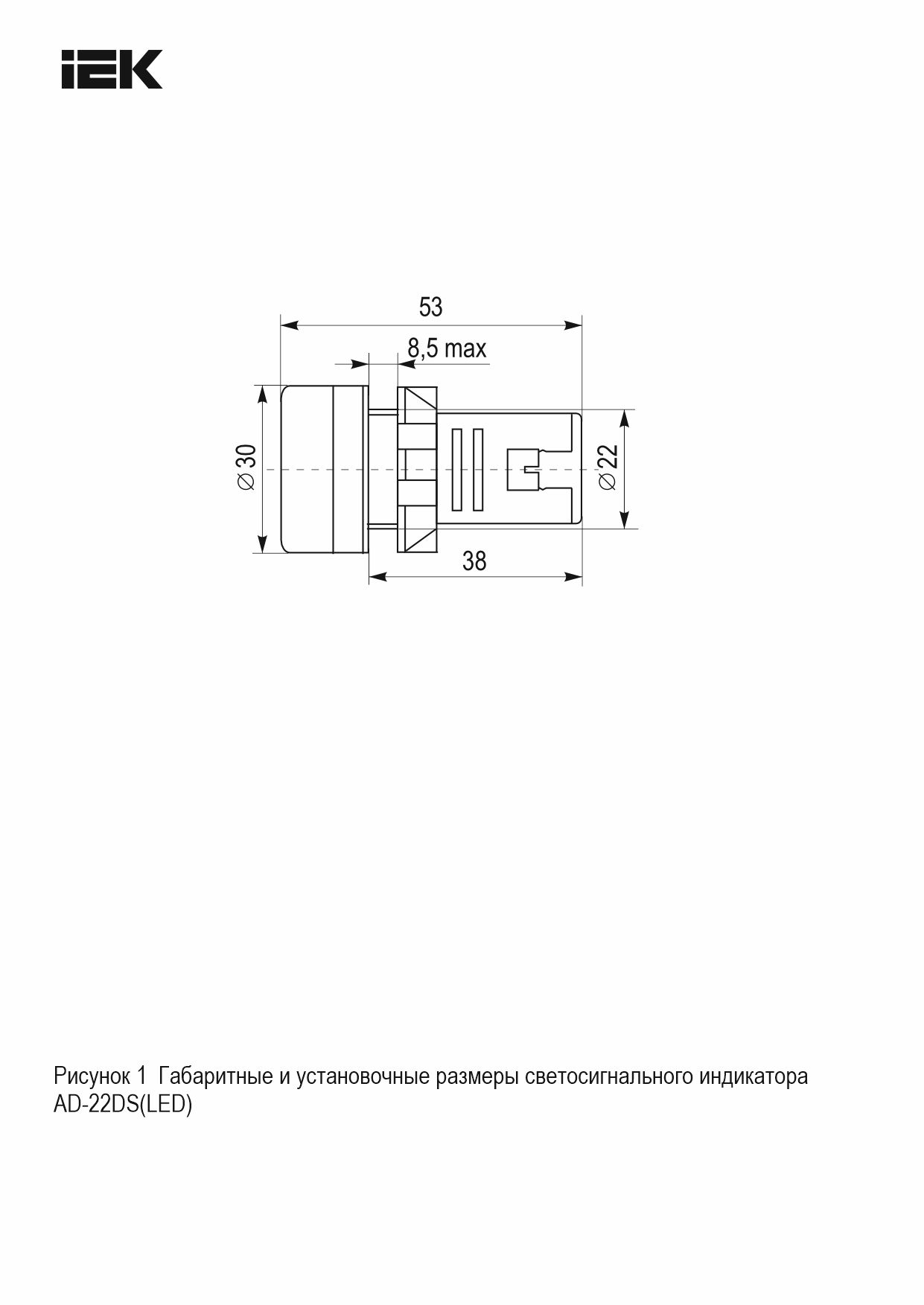Лампа AD22DS(LED)матрица d=22мм красный 24В AC/DC IEK