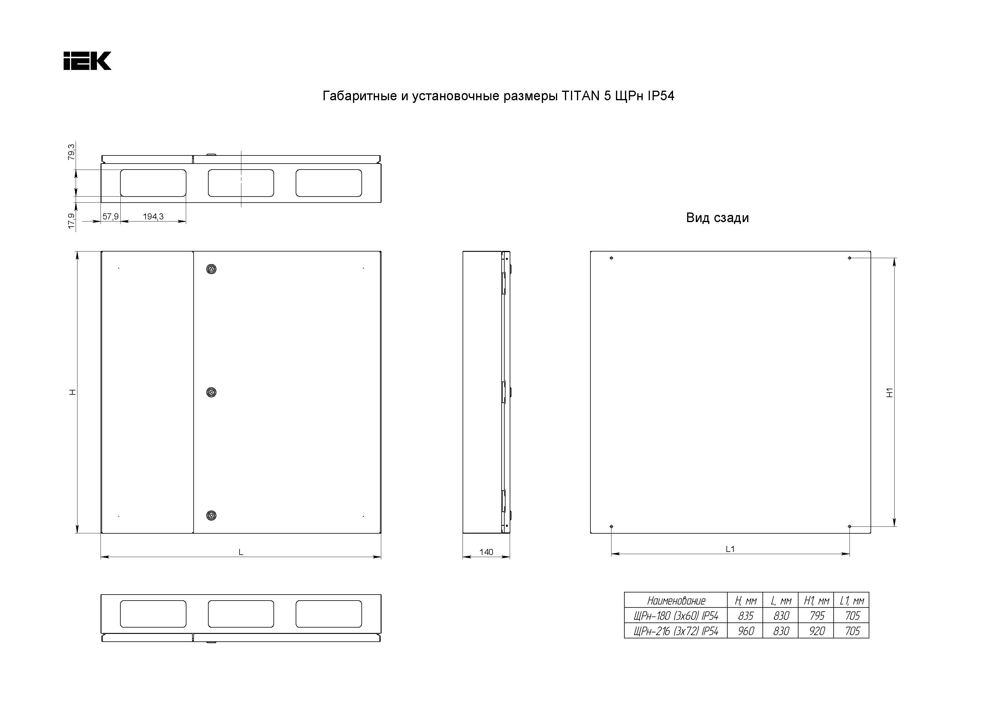 TITAN 5 Корпус металлический ЩРн-180 (3х60) 835х830х140мм IP54 белый (две двери) IEK
