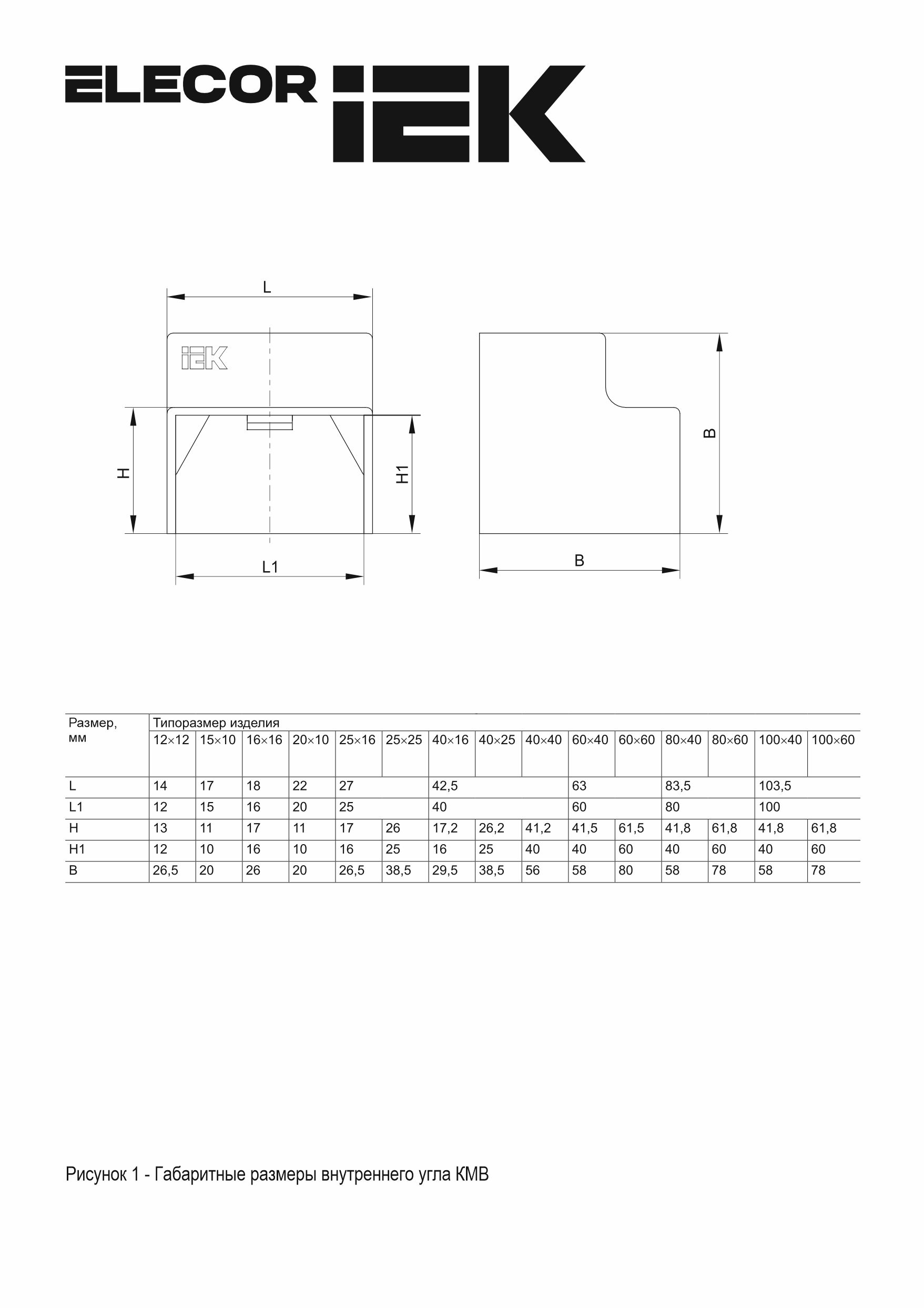 ELECOR Угол внутренний КМВ 100х60 белый (2шт/компл) IEK