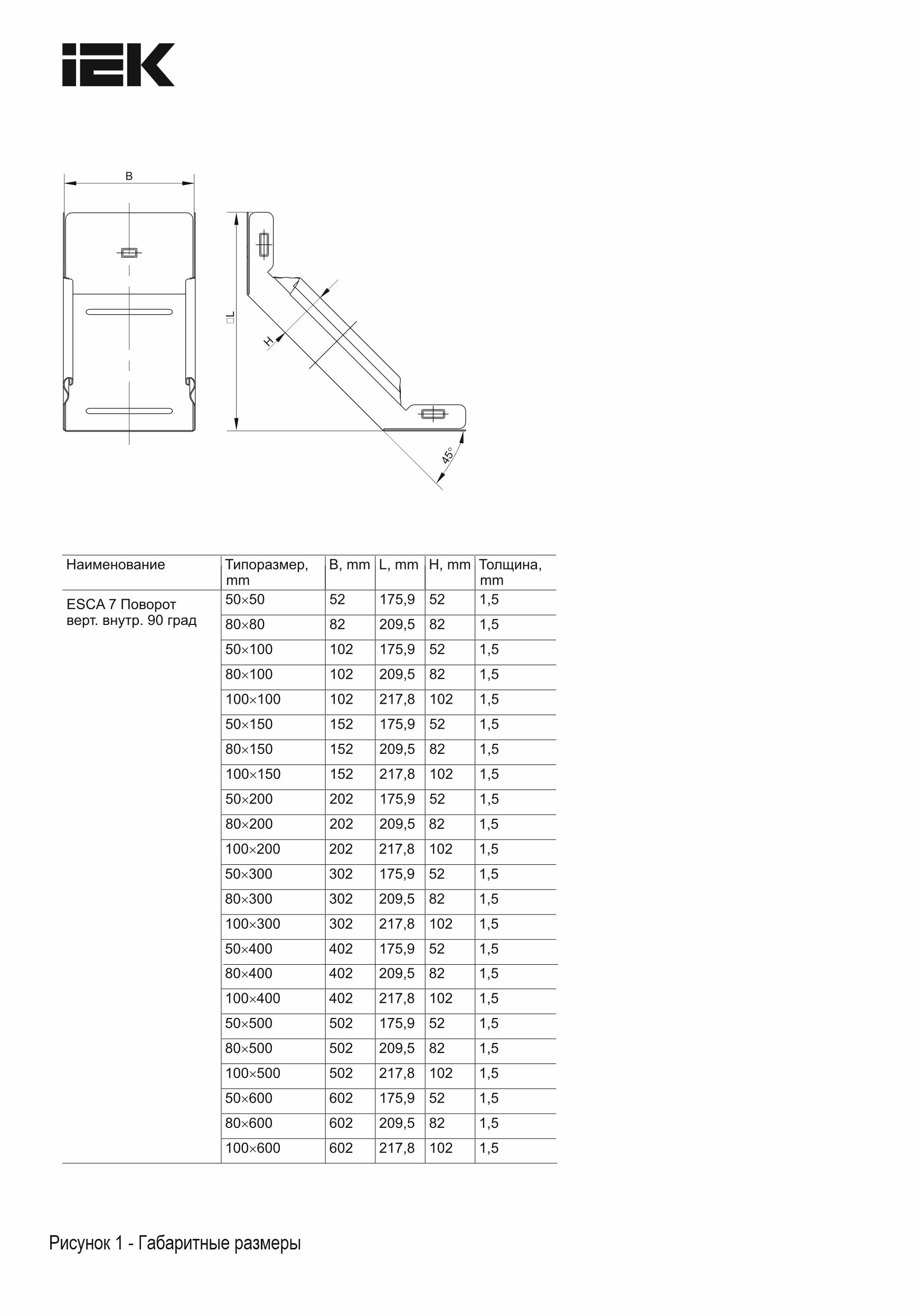 ESCA 7 Поворот вертикальный внутренний 90град 100х300-1,5 HDZ IEK
