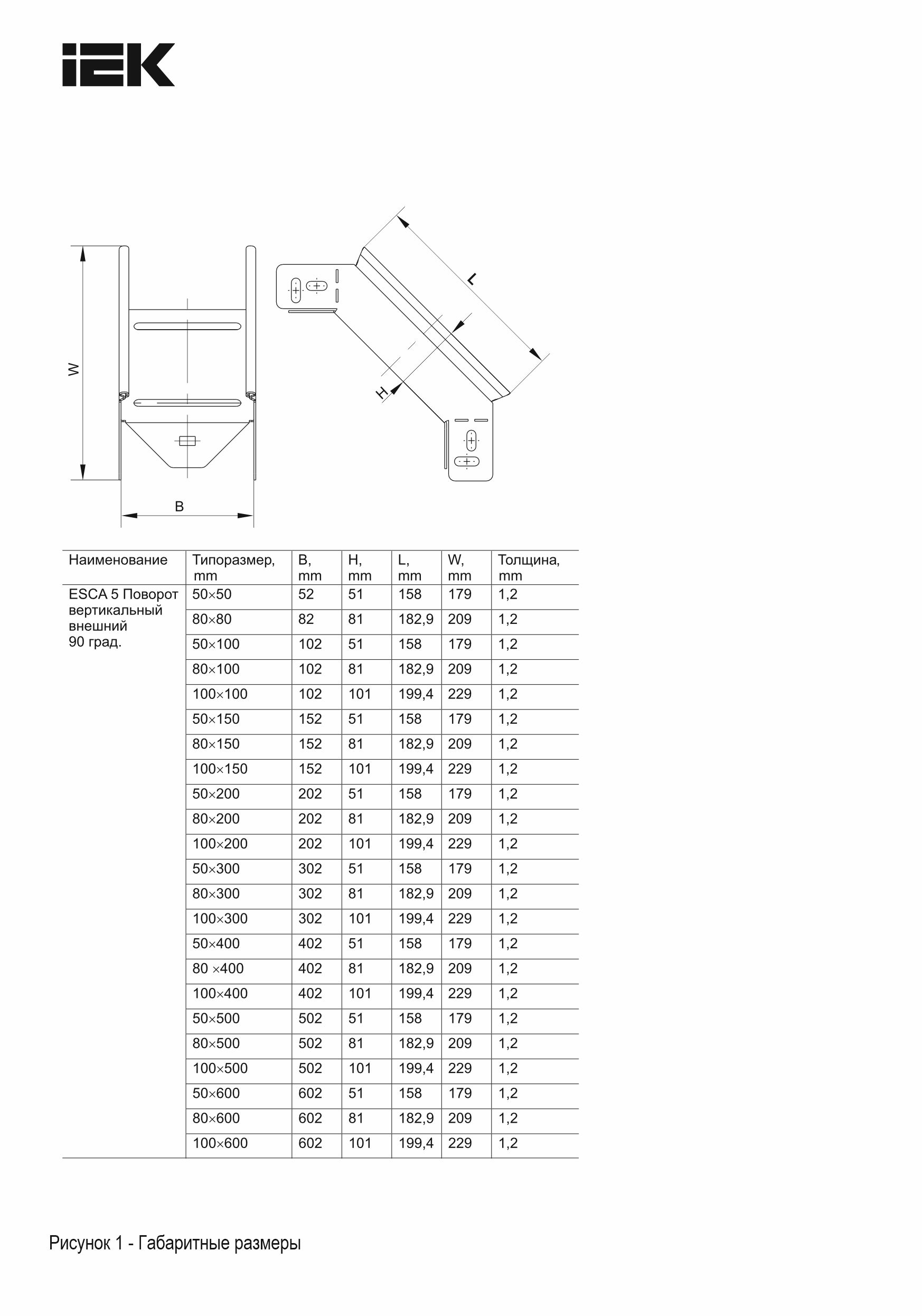 ESCA 5 Поворот вертикальный внешний 90град 80х500-1,2 IEK