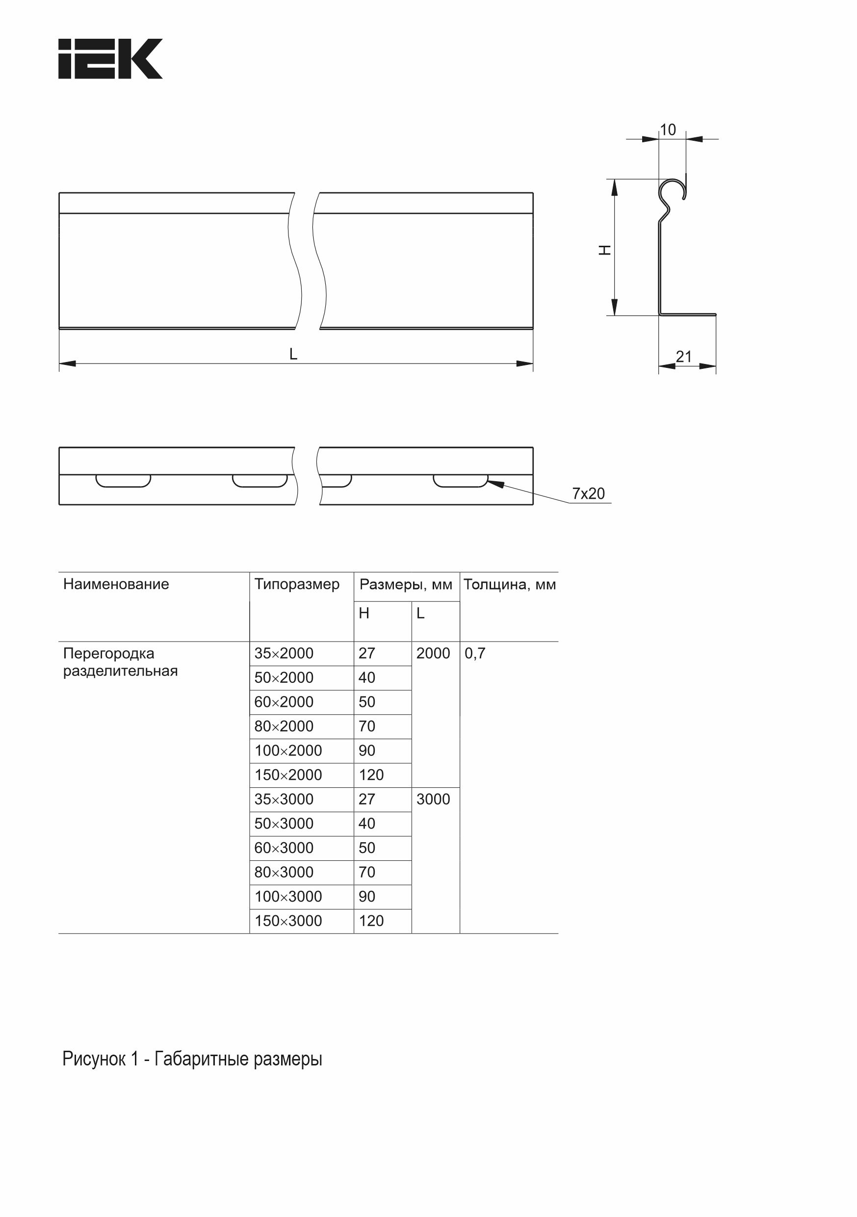 Перегородка разделительная 80х2000 0,7мм IEK