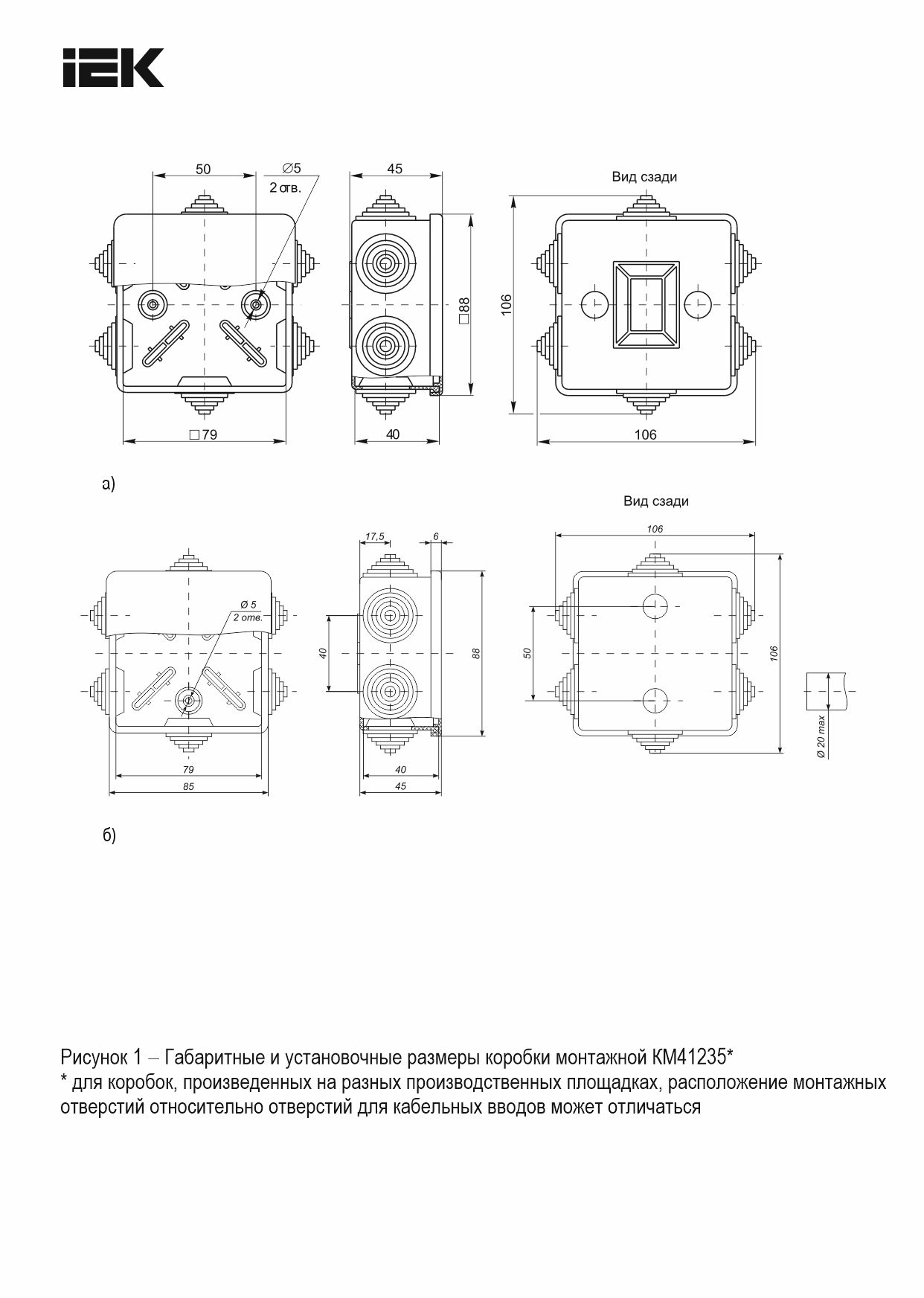 Коробка распаячная КМ41235 для открытой проводки с защелкивающейся крышкой безгалогенная (HF) 85х85х40мм IP44 6 гермовводов черная (RAL 9005) IEK