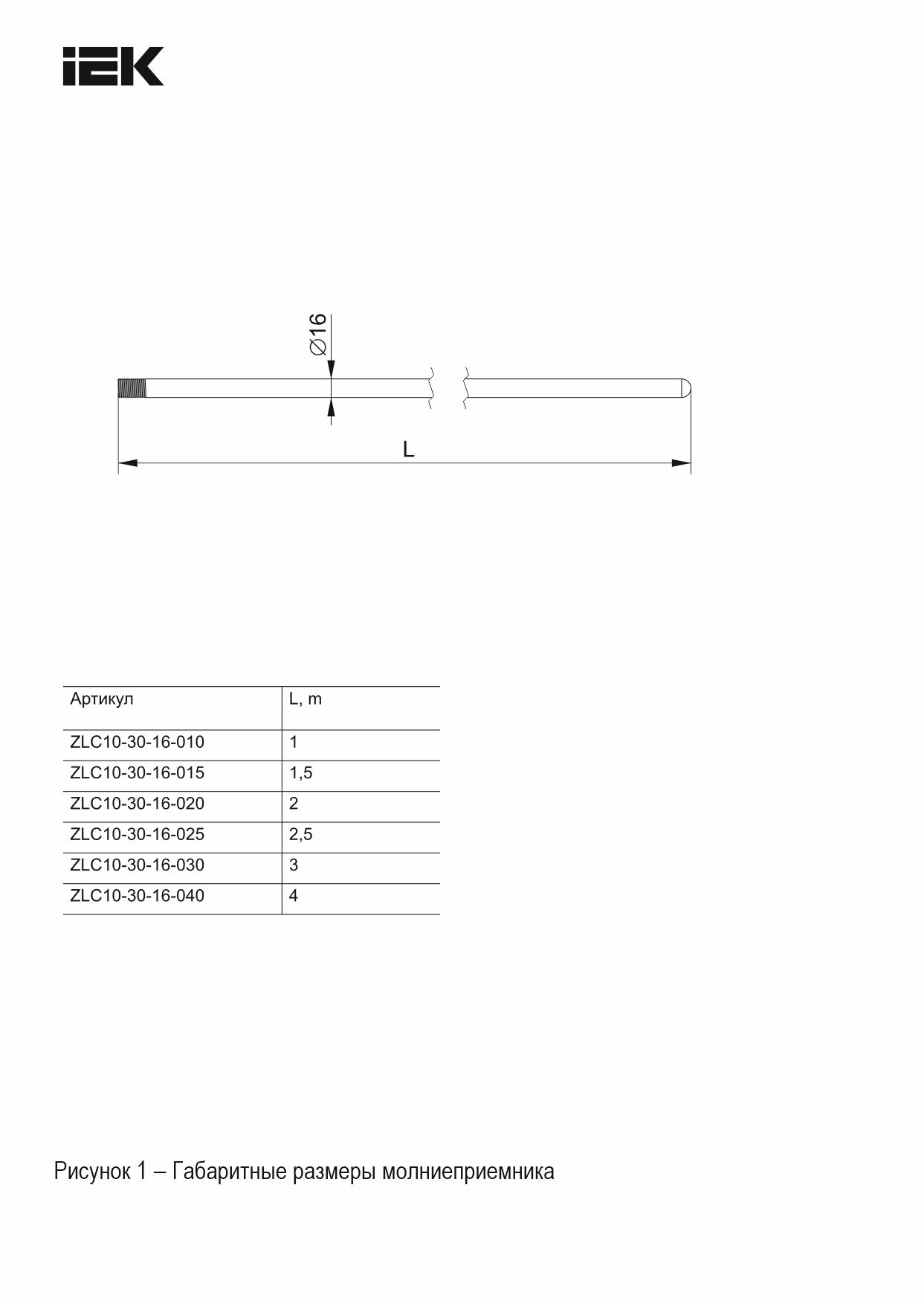 Молниеприемники товарного знака IEK используется для приема на себя удара молнии. Представляют собой круглый проводник. Закрепляются одним из следующих способов: на мачте молниеприемной, на мачте секционной, на бетонном основании для молниеприемника, на вертикальном фасаде при помощи держателей молниеприемника.