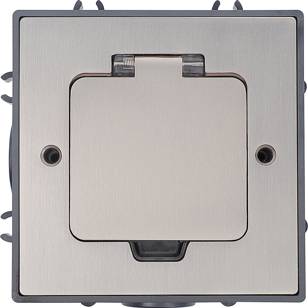 Лючок напольный IP44 предназначен для постоянного или временного подключения электрооборудования и информационных сетей в помещениях с высокой проходимостью и возможным попаданием влаги на напольное покрытие, где невозможно организовать подключение в стенах или использовать переносные решения. Лючок можно укомплектовать до 2 модулей (45х22,5 мм) или до 1 поста (45х45 мм) электроустановочных изделий 45х45 серий Primer или Daccord. Монтаж лючка производиться в бетонные полы. Монтажные коробки лючков могут быть жестко соединены между собой, что открывает возможность установки нескольких лючков в ровный ряд. Лючок представлен в цвете матовые никель, который подойдет к большинству напольных покрытий. Комплектация лючка включает все необходимое для монтажа. Простая и надежная система открытия лючка с откидыванием на 180° предоставляет максимальный доступ к розеткам. Степень защиты от ударов IK09. Установка вровень с напольным покрытием.