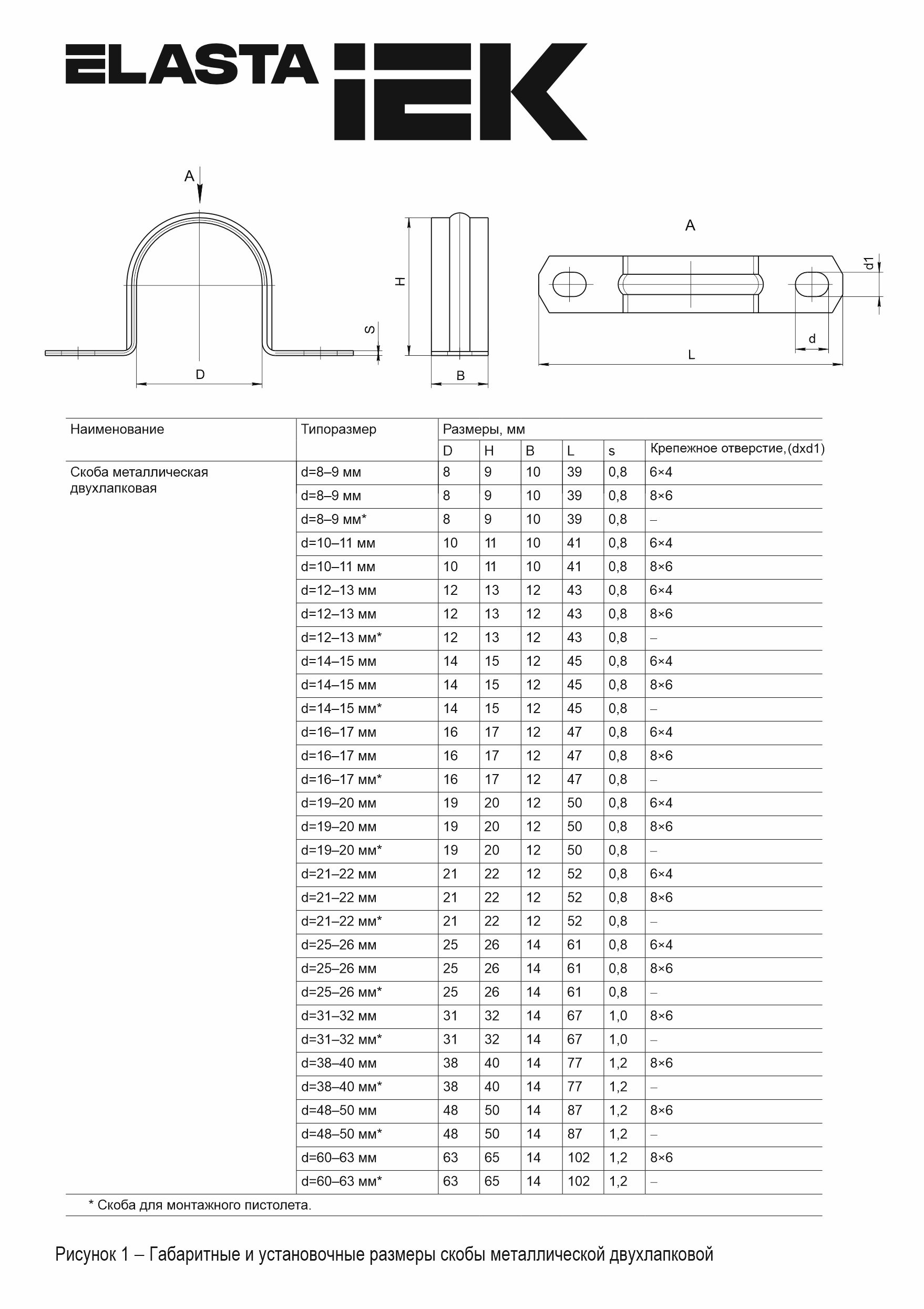 ELASTA Скоба металлическая двухлапковая d=25-26мм с крепежным отверстием 8х6 (10шт/упак) IEK