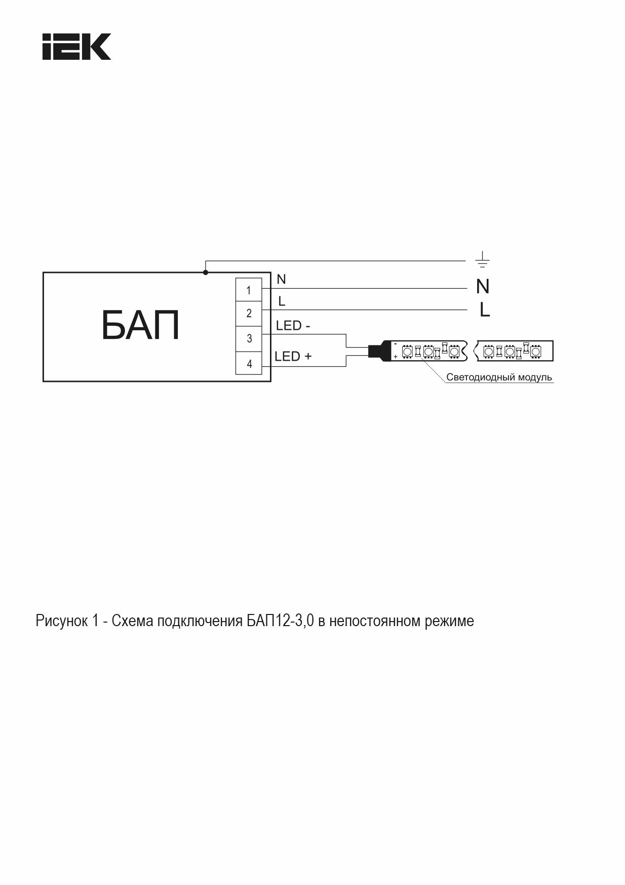Блок аварийного питания (БАП) обеспечивает бесперебойную работу светодиодных светильников в случае непредвиденного отключения сети 230В или при снижении напряжения ниже порогового уровня. Блок включает 1 подключенную светодиодную линейку. БАП12-3 IEK встраивается в светильник или в выносной бокс и обеспечивает работу в аварийном режиме светодиодных ламп, светодиодных модулей (СИД) и светодиодных лент напряжением питания 6-20 В и максимальной мощностью от 3 Вт до 12 Вт. В дополнение к БАП 12 предлагается светодиодная линейка LED-18SMD2835 IEK, рассчитанная специально на работу с данным блоком. Использование БАП 12 со светодиодной линейкой LED-18SMD2835 позволит организовать аварийное освещение светильников любых типов (с ЛЛ, LED).