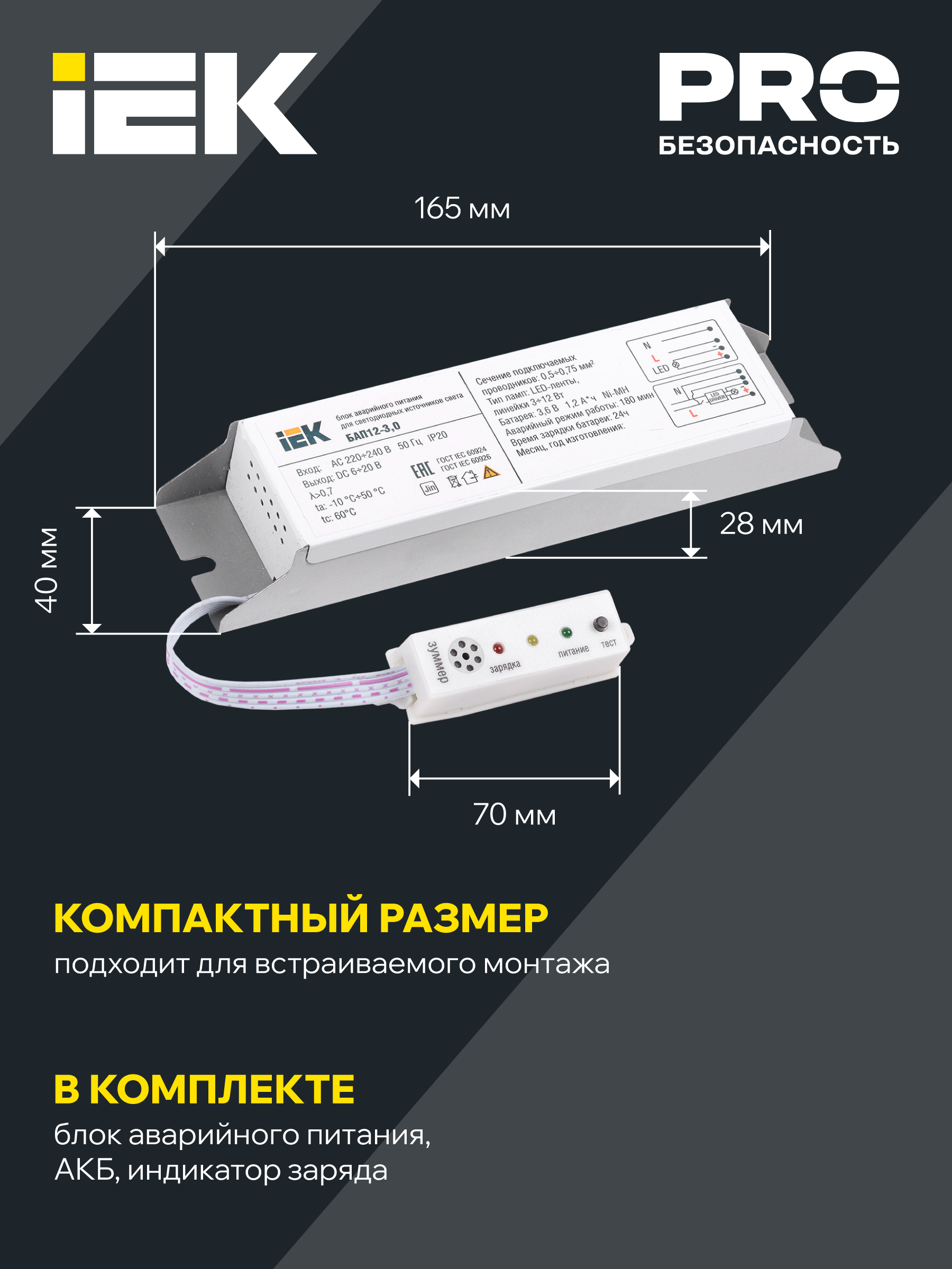 Блок аварийного питания БАП12-3,0 для LED IEK