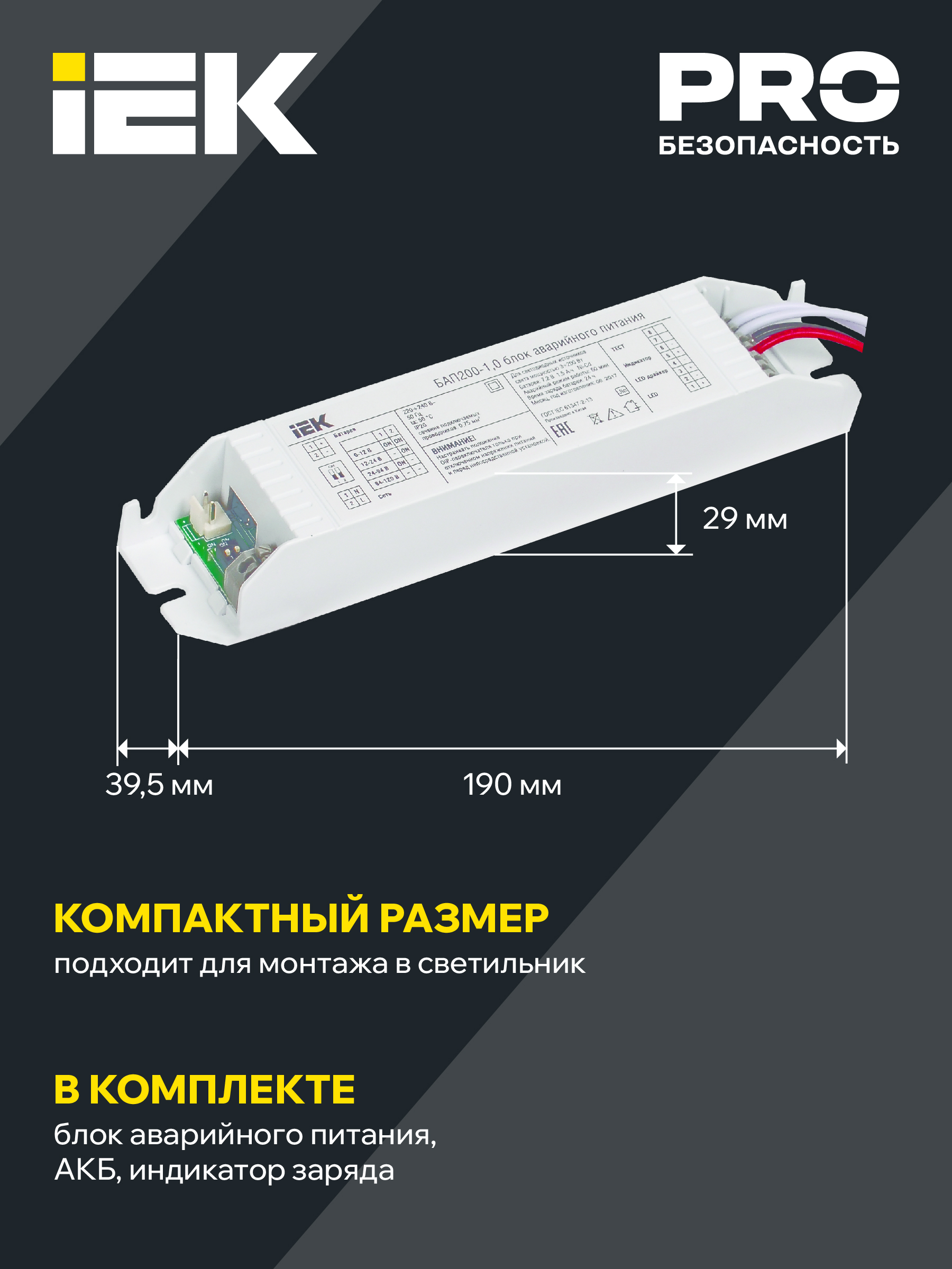 Блок аварийного питания БАП200-3,0 для LED IEK