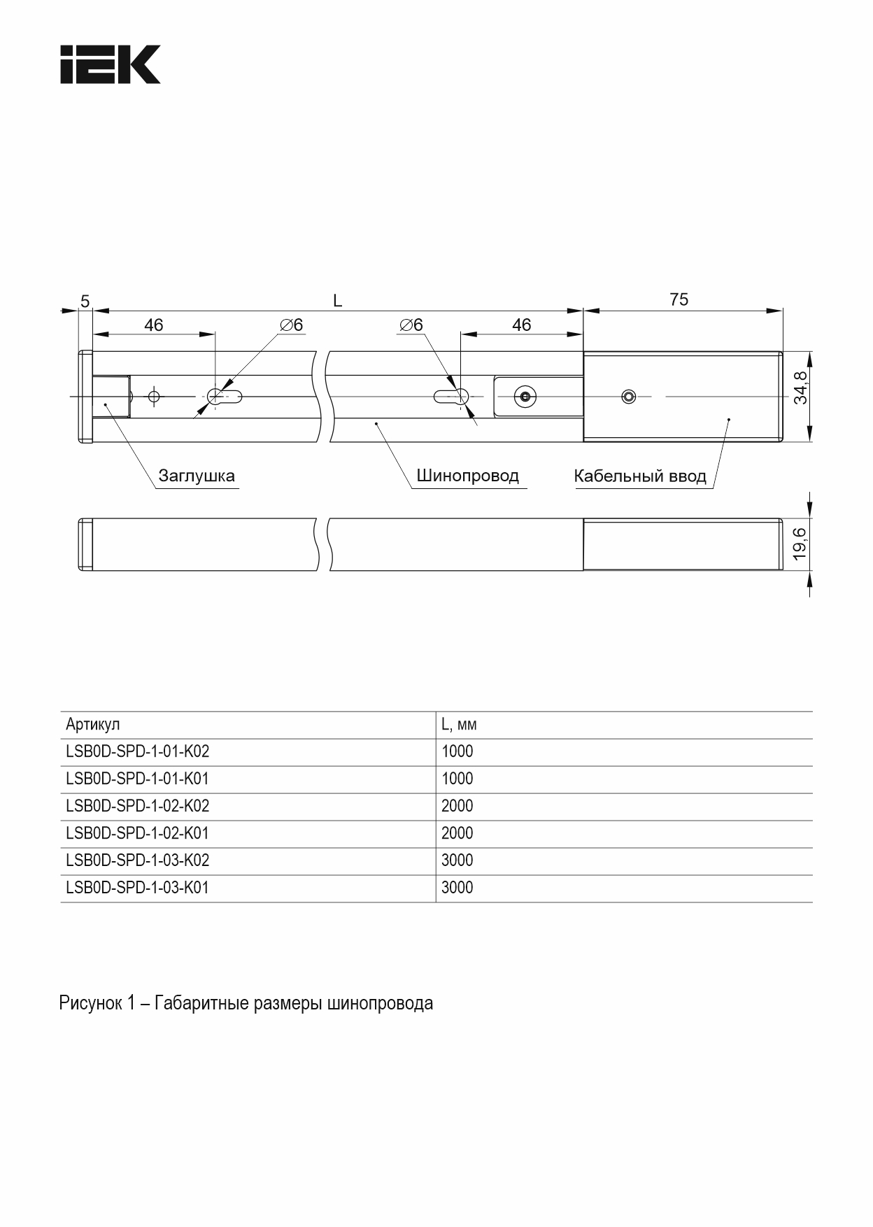 Профиль для шинопровода осветительного однофазного 2 м белый IEK