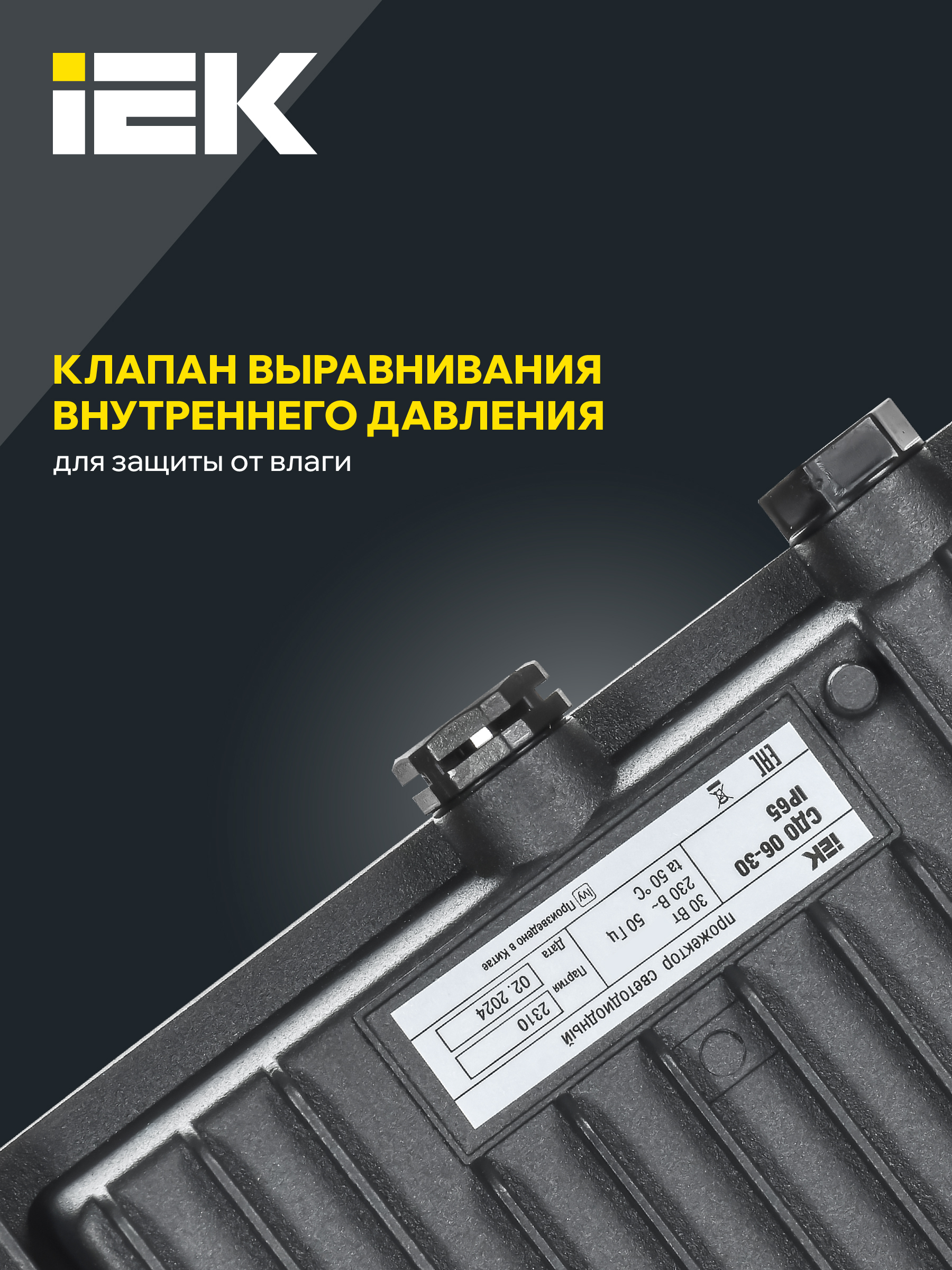 - Клапан выравнивания внутреннего давления защищает прожектор от попадания влаги.
