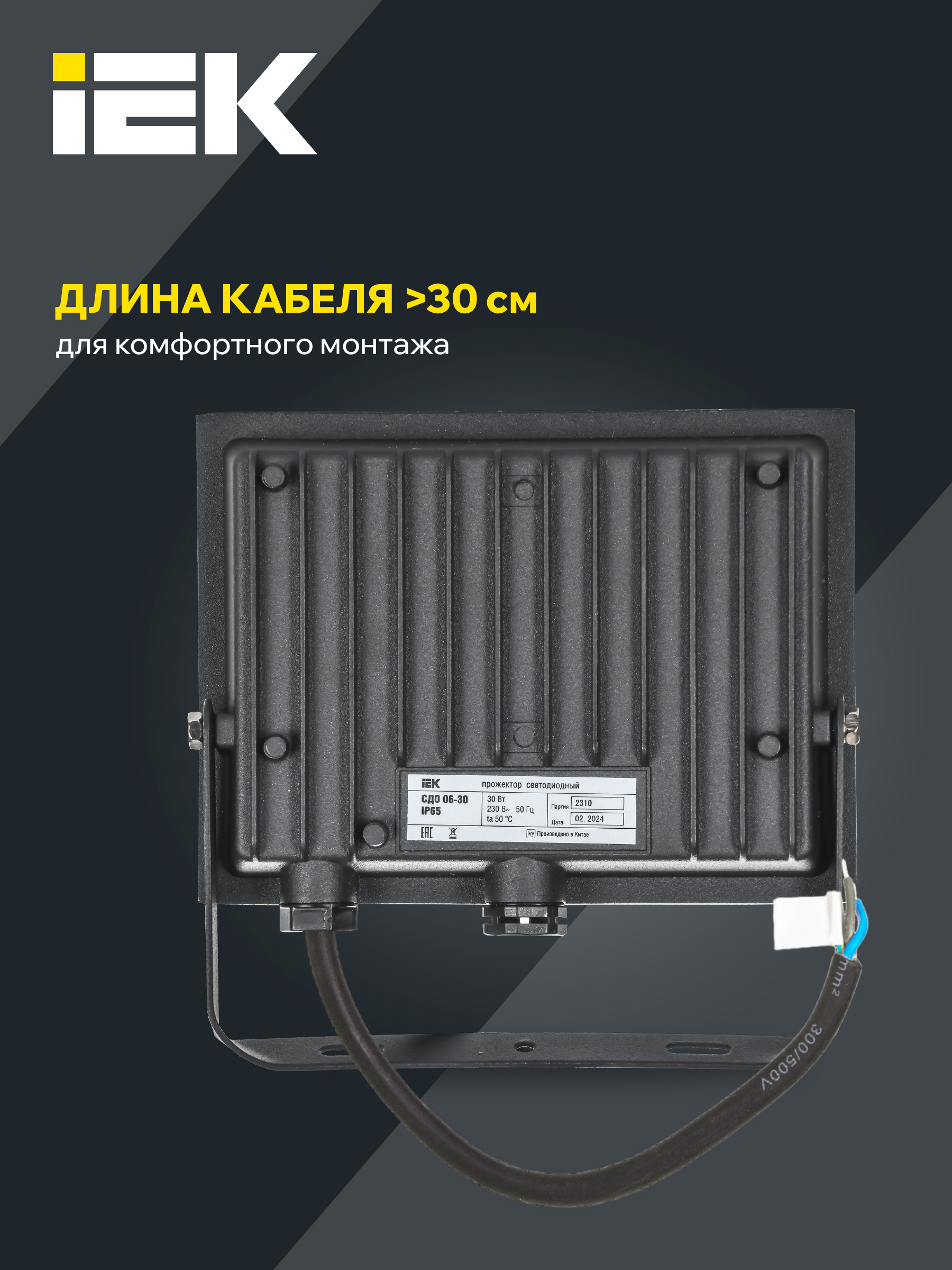 Прожекторы IEK СДО 06 нового поколения стали ещё более удобными и долговечными. 100% мощность. Честные ватты. Отражатель новой формы и рассеиватель из калёного стекла. Прожектор соответствует UGR < 19. Увеличена длина кабеля до 350 мм. Клапан выравнивания внутреннего давления защищает прожектор от попадания влаги. Монтажная скоба с изогнутым основанием для установки на стену. Влагозащищённая кабельная муфта, встроенная в корпус, позволяет сохранить защиту от пыли и влаги IP65 без дополнительных вспомогательных устройств (для прожекторов мощностью 150 и 200 Вт). Мощность и световой поток 100% соответствуют заявленным на упаковке.