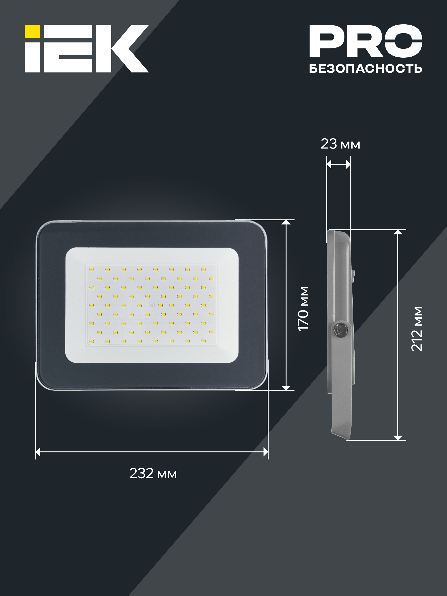 Прожектор светодиодный СДО 07-70 IP65 серый IEK