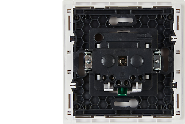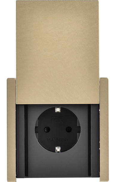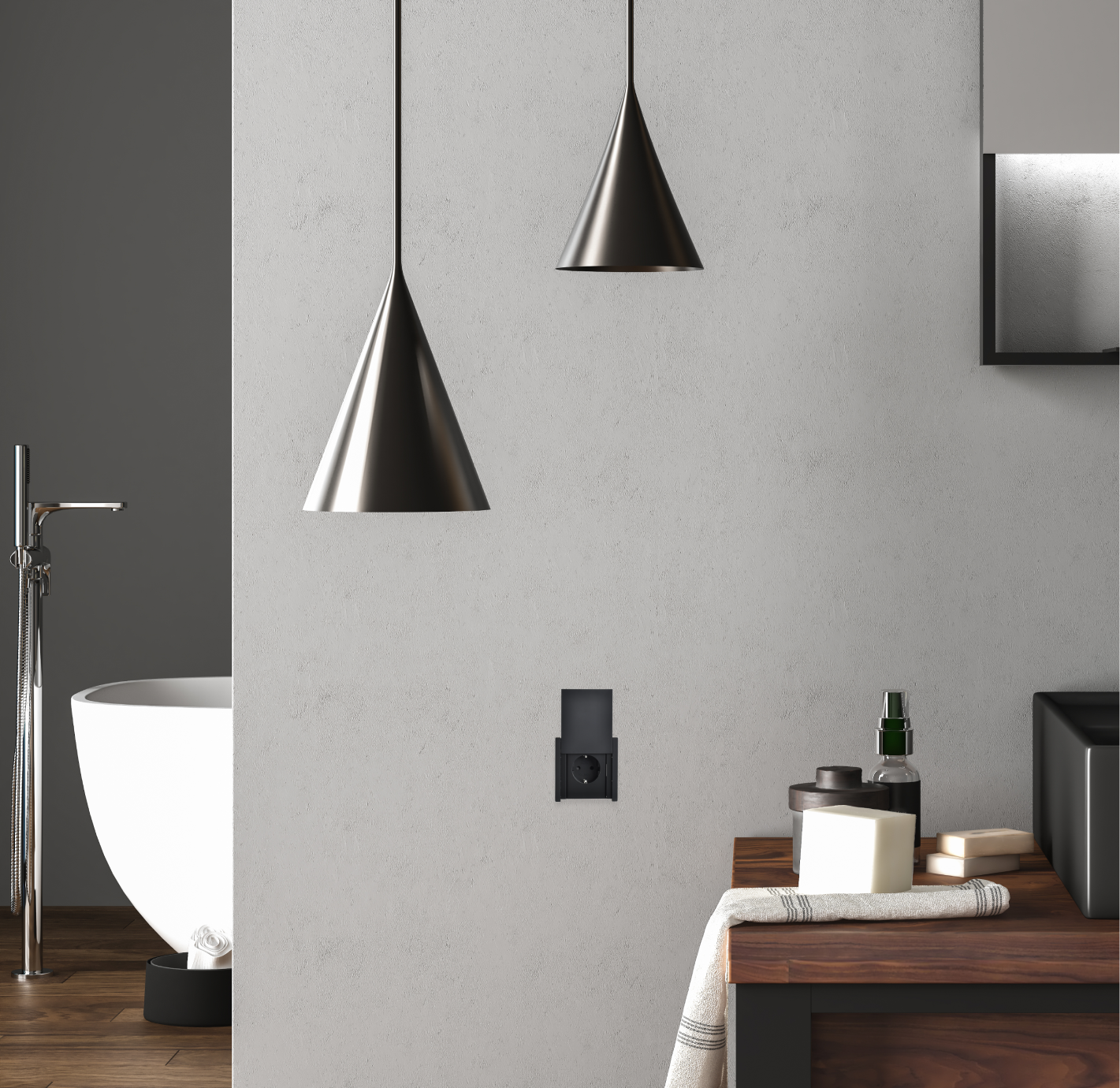 Защитная шторка интегрирована в корпус: дополнительная безопасность — без визуального перегруза. Модель с IP44 и уникальной запатентованной конструкцией «слайдер» подходит для влажных зон.
