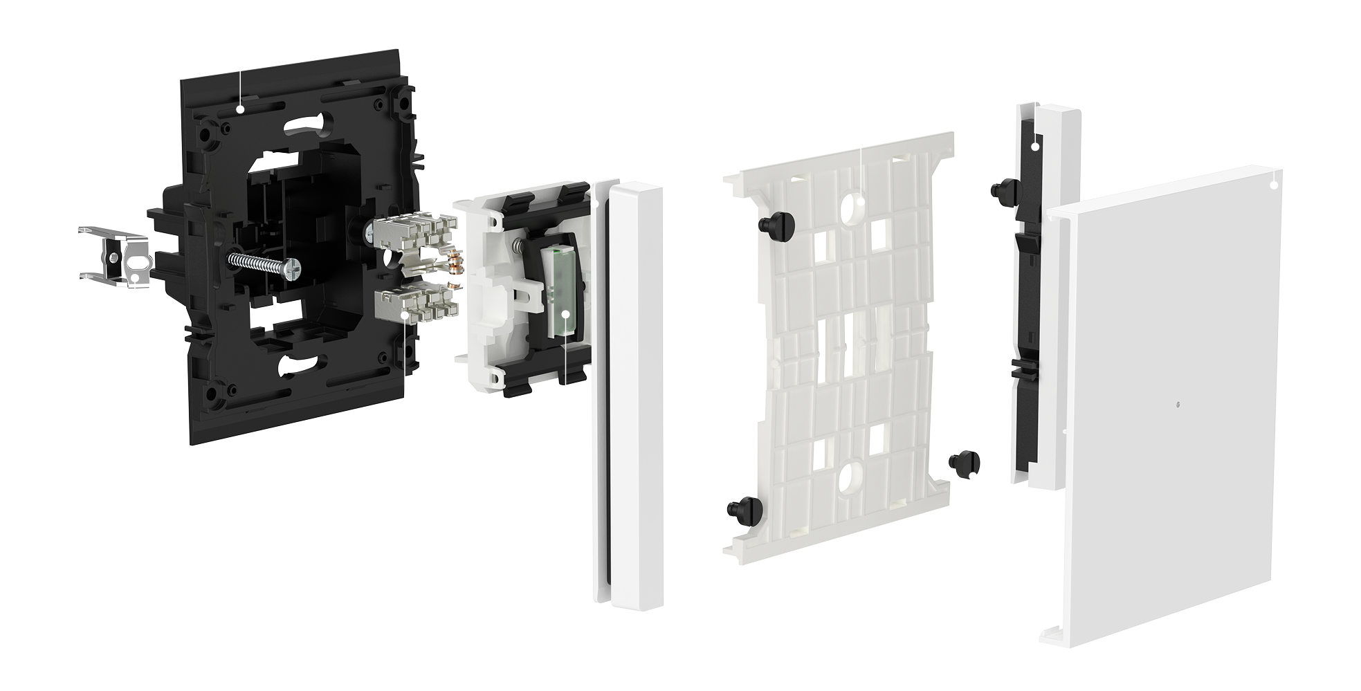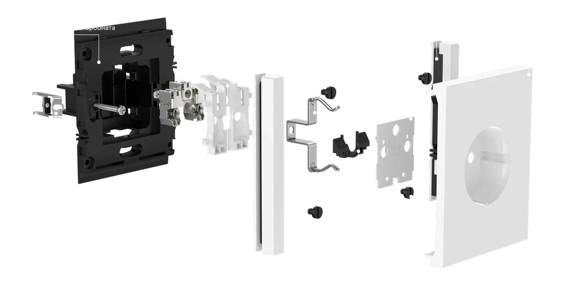 Запатентованная безрамочная технология масштабируемого суппорта предоставляет возможность установки розеток и выключателей от одного поста до бесконечности
