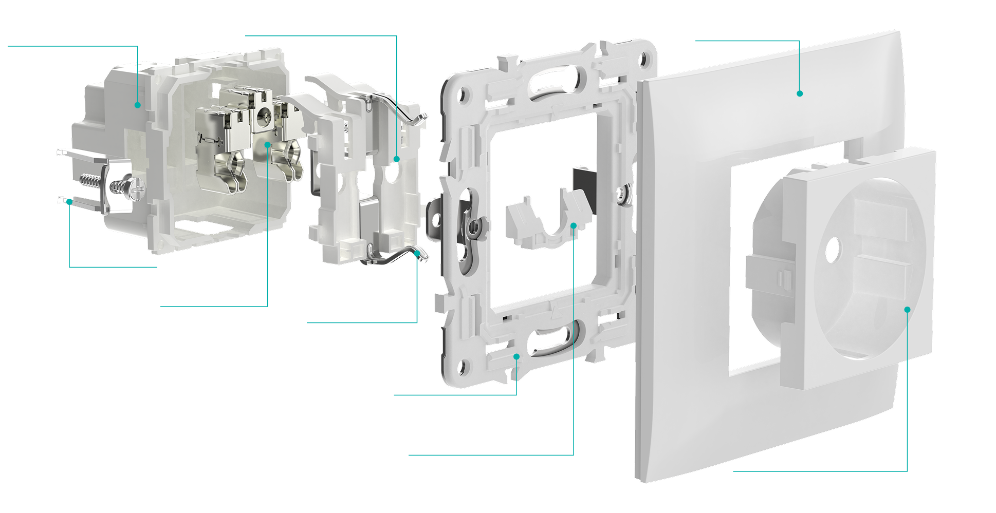 к стене, отсутствие видимых винтов на лицевой части розетки придает эстетическую чистоту