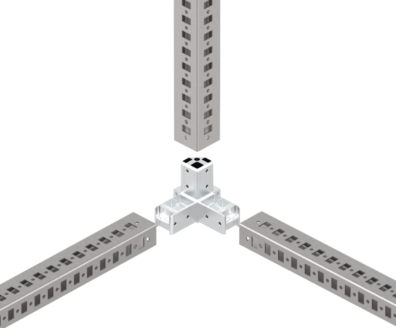 Симметричная конструкция профиля дает возможность устанавливать панели и двери в любой плоскости.
